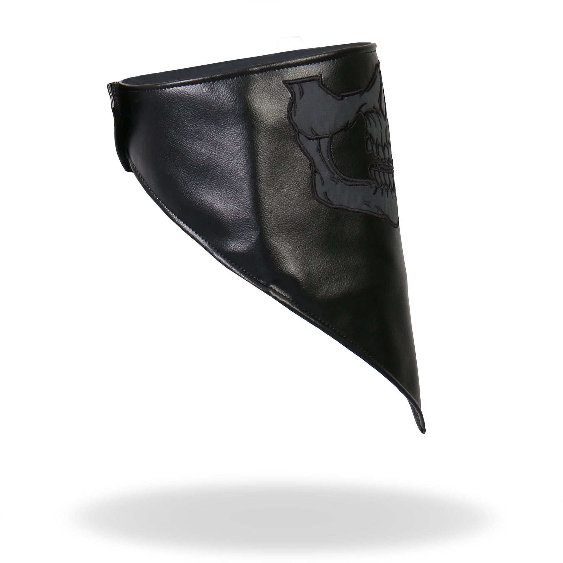 Hot Leathers NWL1008 Black Leather Reflective Skull Neck Warmer with Fleece Lining
