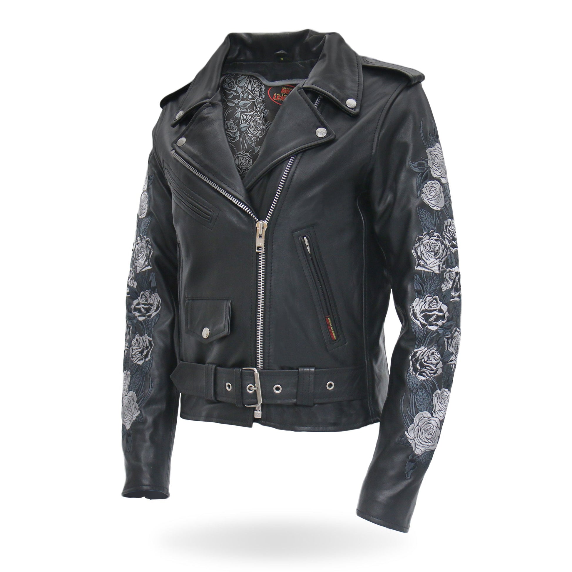 Hot Leathers Rose Embroidered Ladies Motorcycle Style Leather Jacket