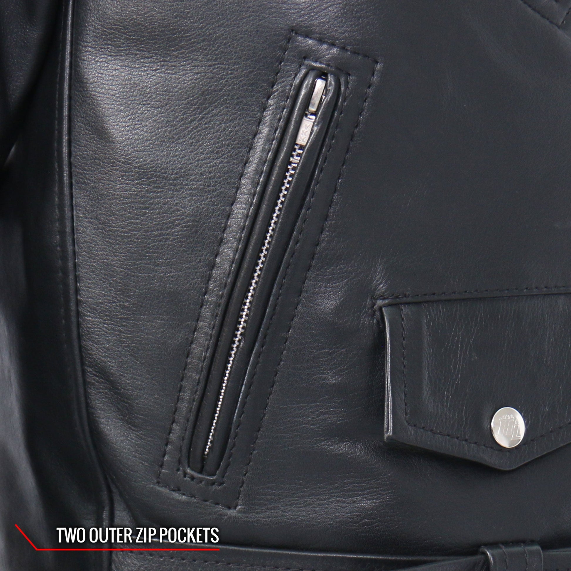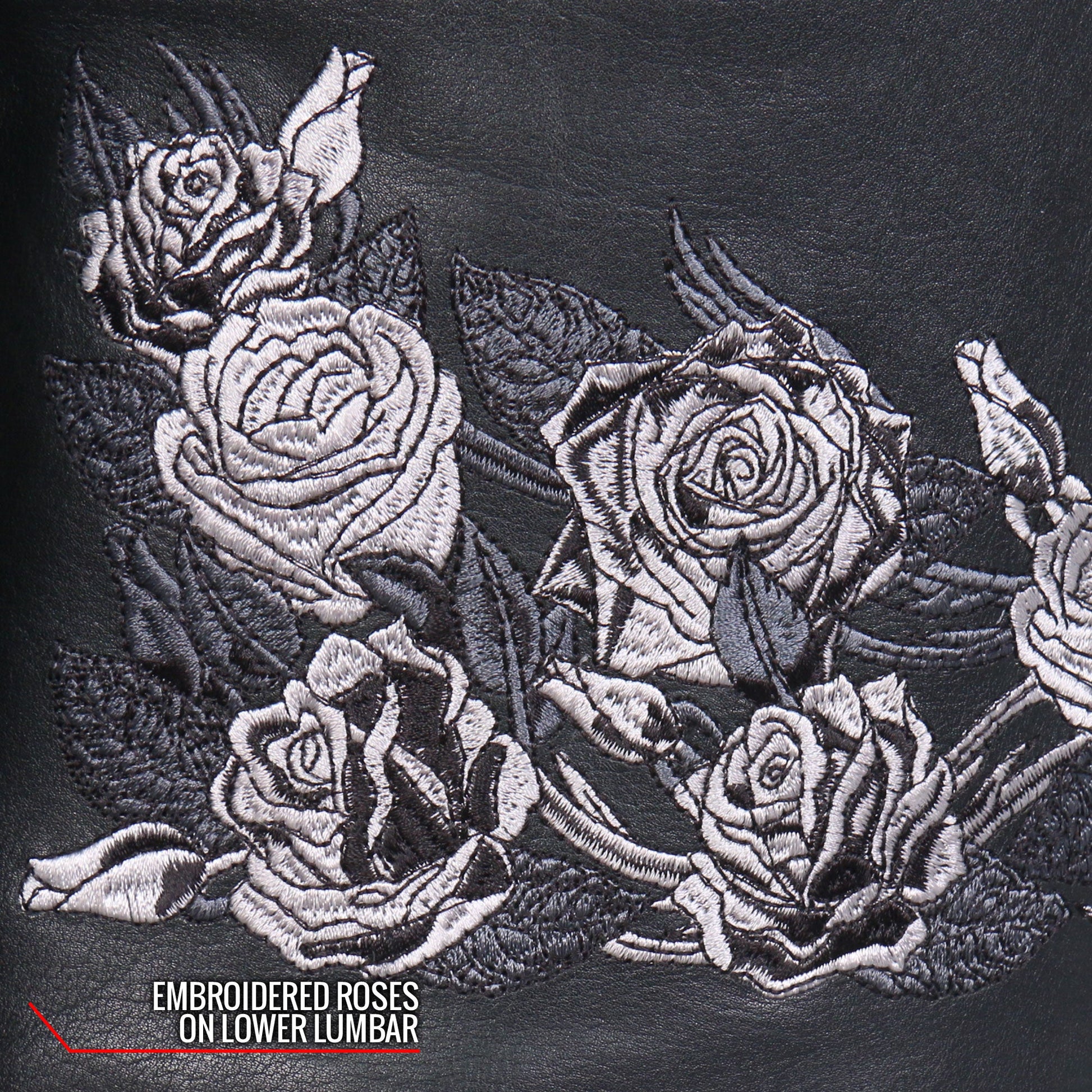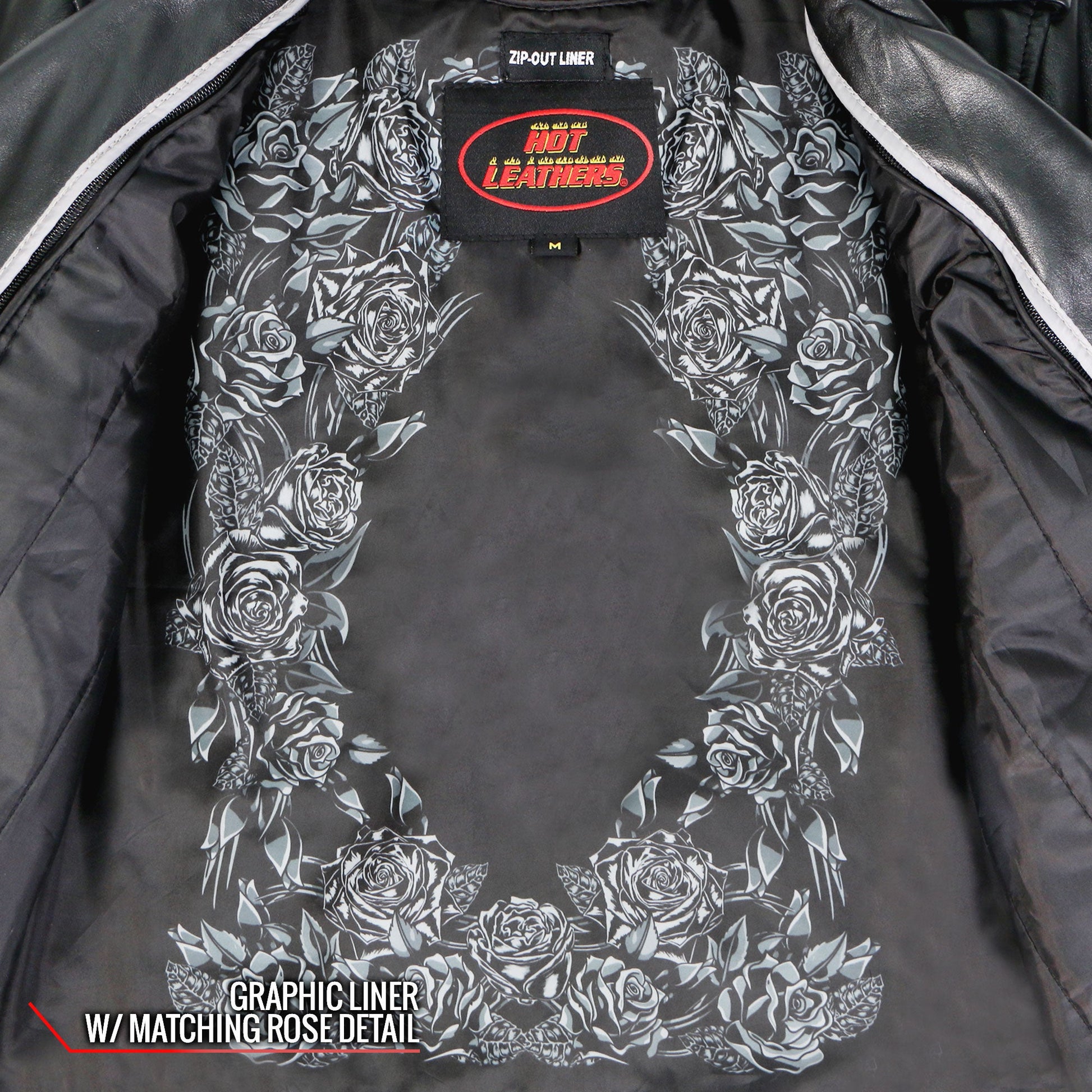 This tone on tone embroidery is our latest Hot Leathers original artwork. It adds just the right touches to our classic style motorcycle jacket. The soft hand of this leather makes it the right jacket for stage or street.