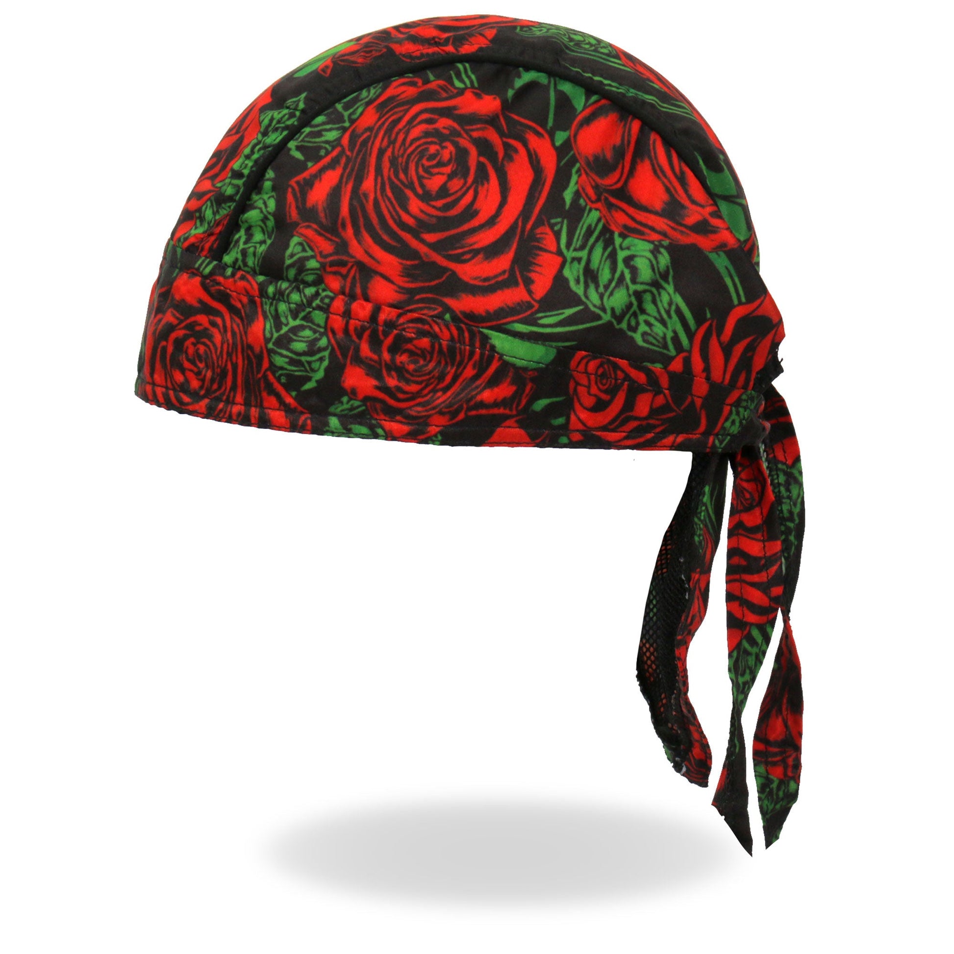 Whether you're hitting the road for a joyride on your motorcycle, getting together with your club, or just need some UV protection and sweat control, Hot Leathers premium doo rag head wraps are just what you need! Put on your new headwrap bandana while you run errands or handle some yard work. Represent your unique style with our moisture wicking, mesh lined head wraps, showcasing bright, long lasting designs sure to turn heads! This head wrap features our original rose design.