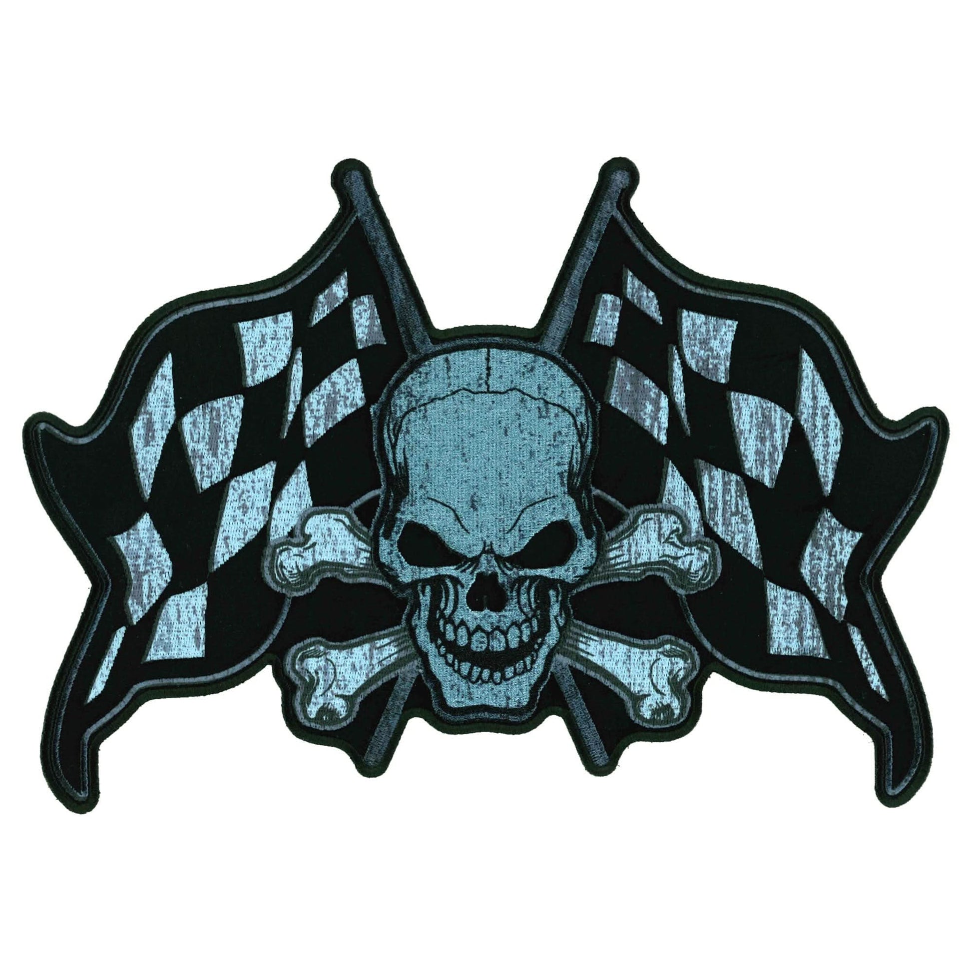 Hot Leathers Skull and Checkered Flags 11" Patch