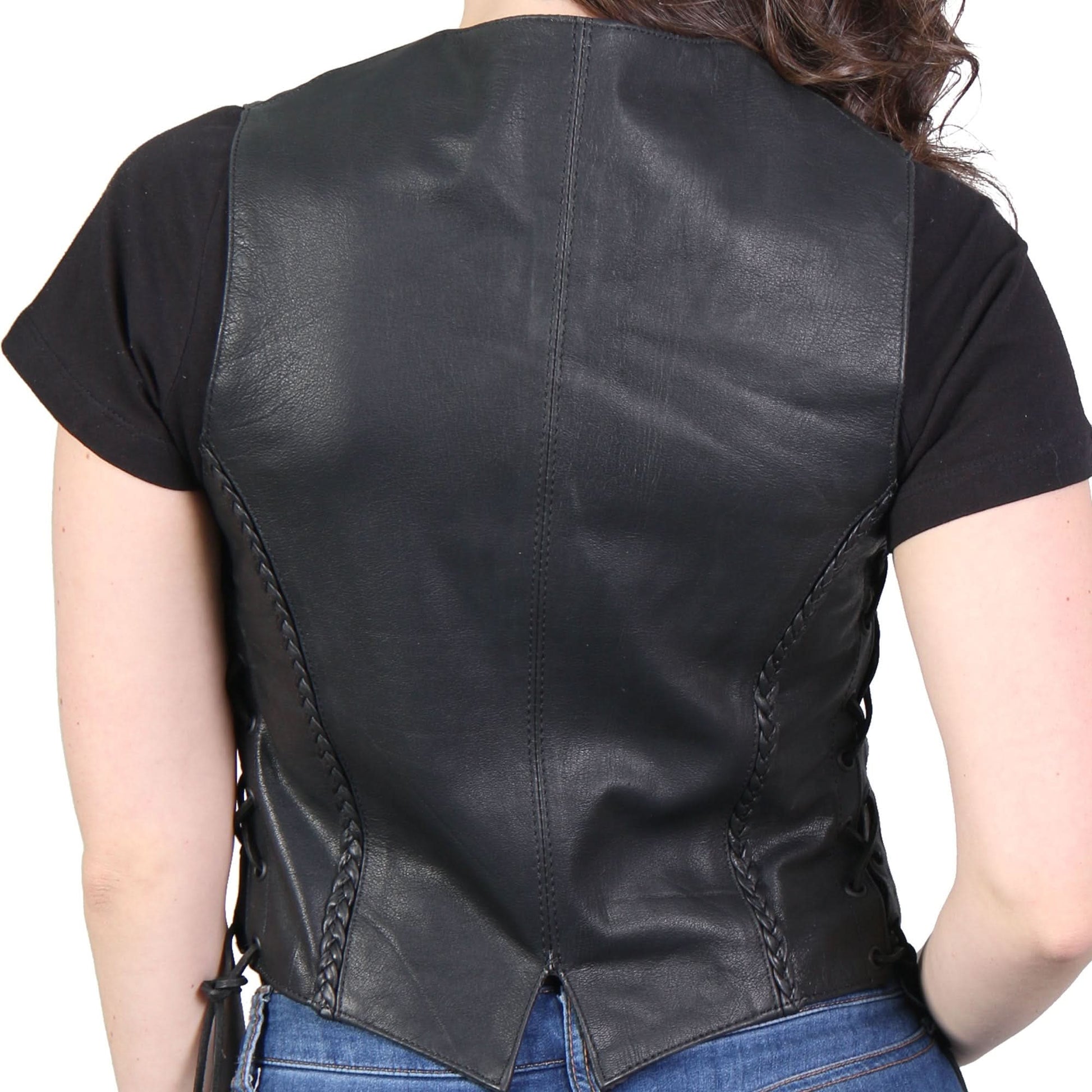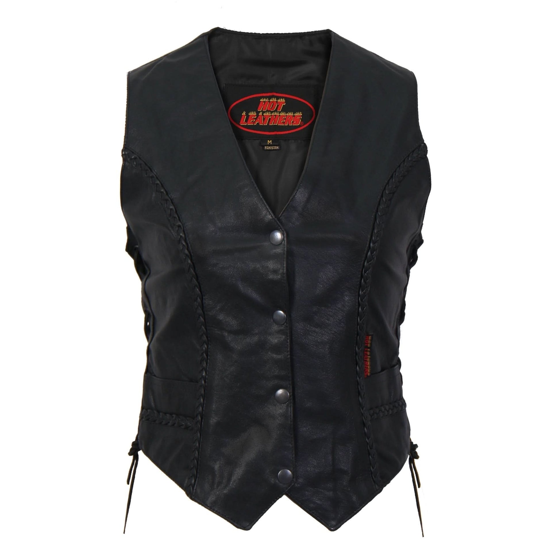 Hot Leathers VSL1006 Ladies Motorcycle Black Leather Braided Biker Vest
