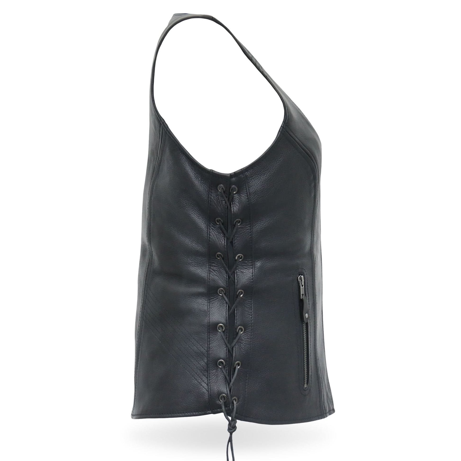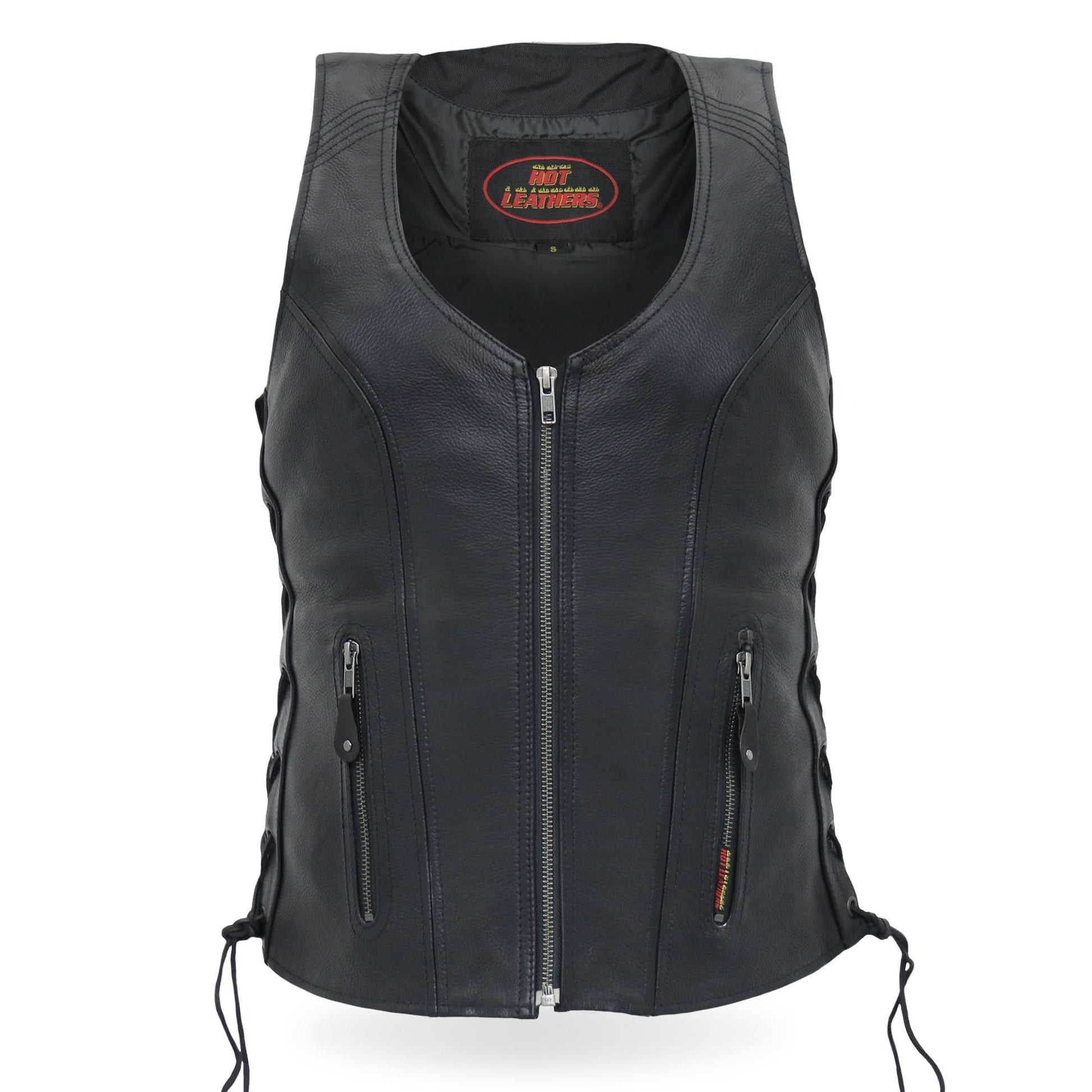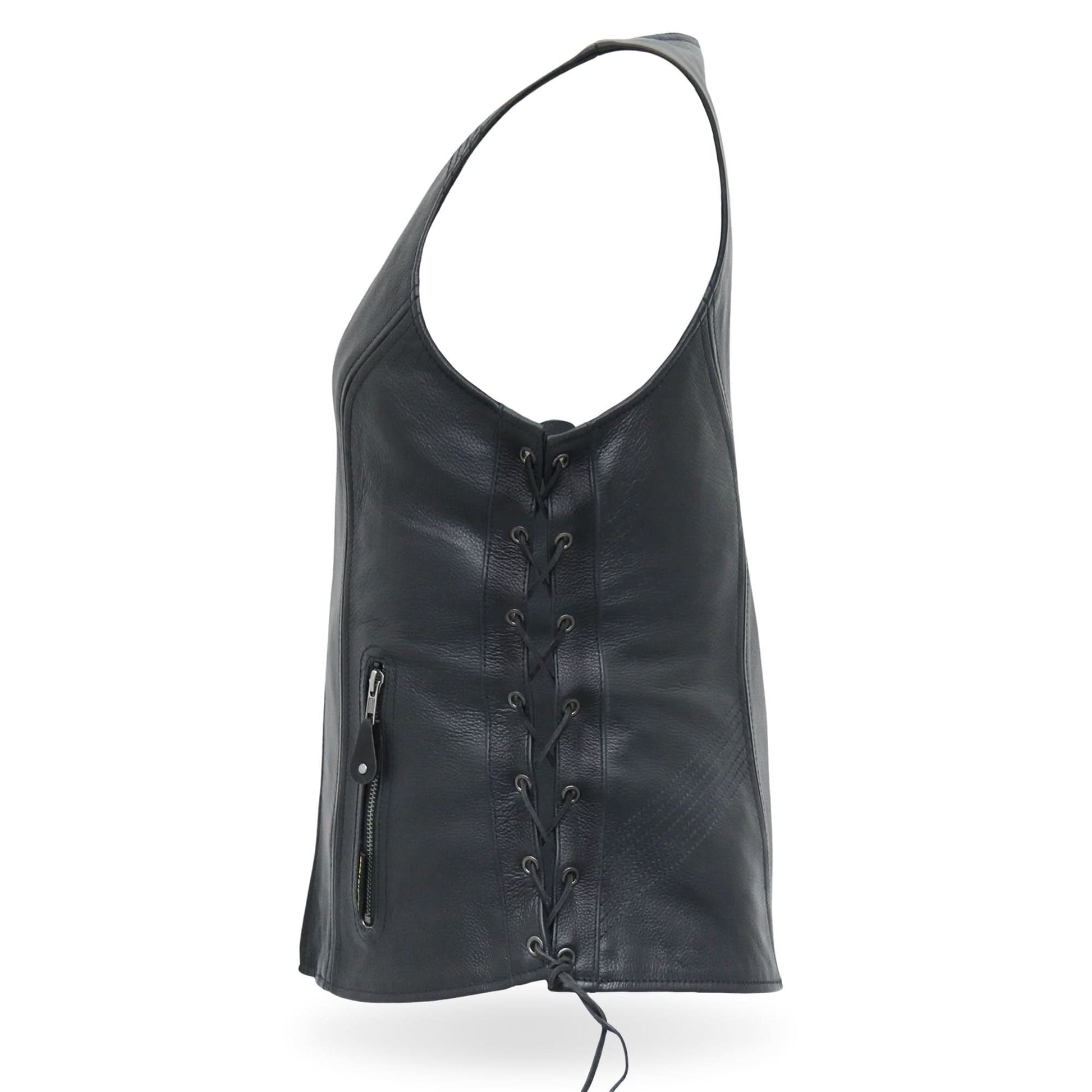 Hot Leathers VSL1013 Ladies motorcycle style Black Leather Side Lace Zip-Up Biker Vest