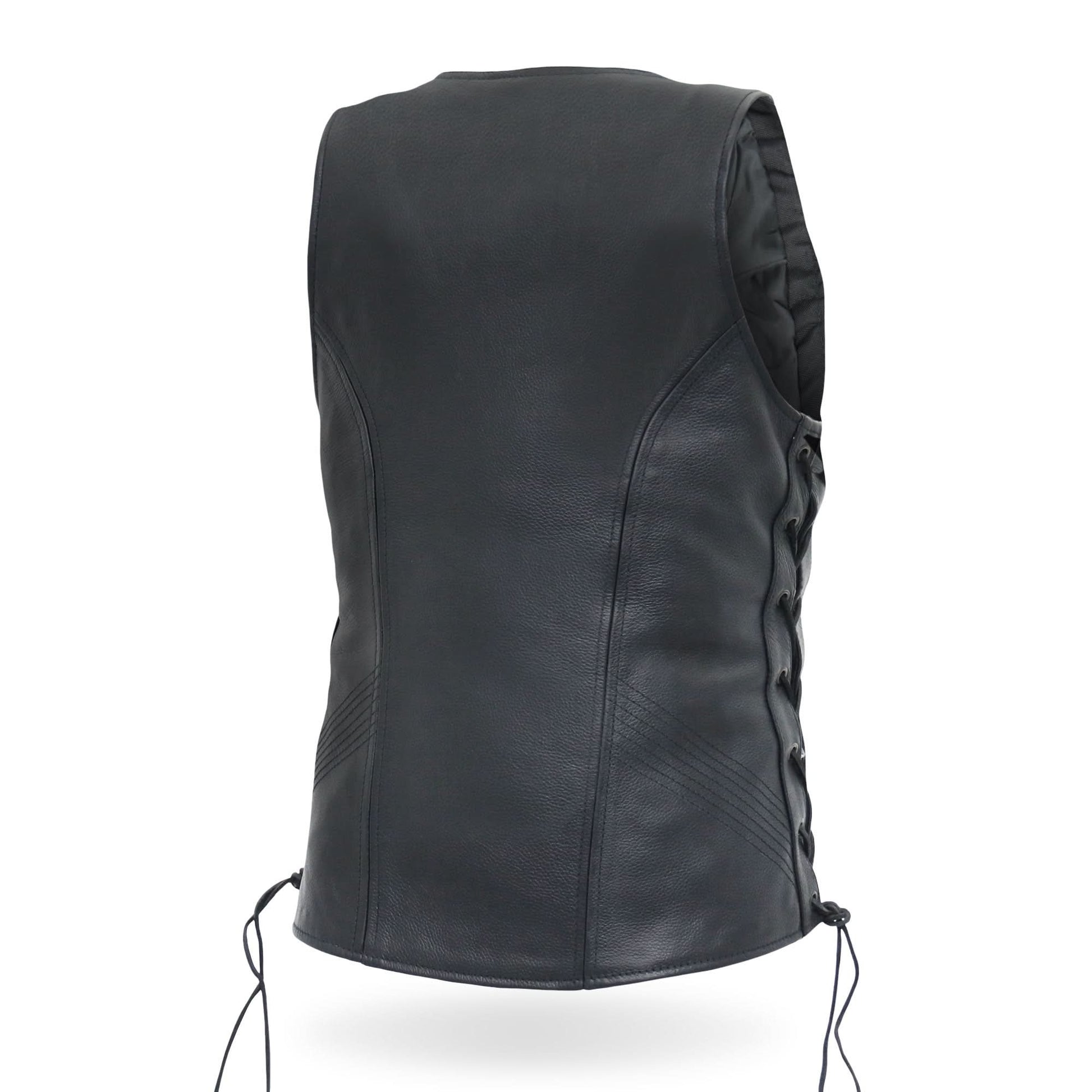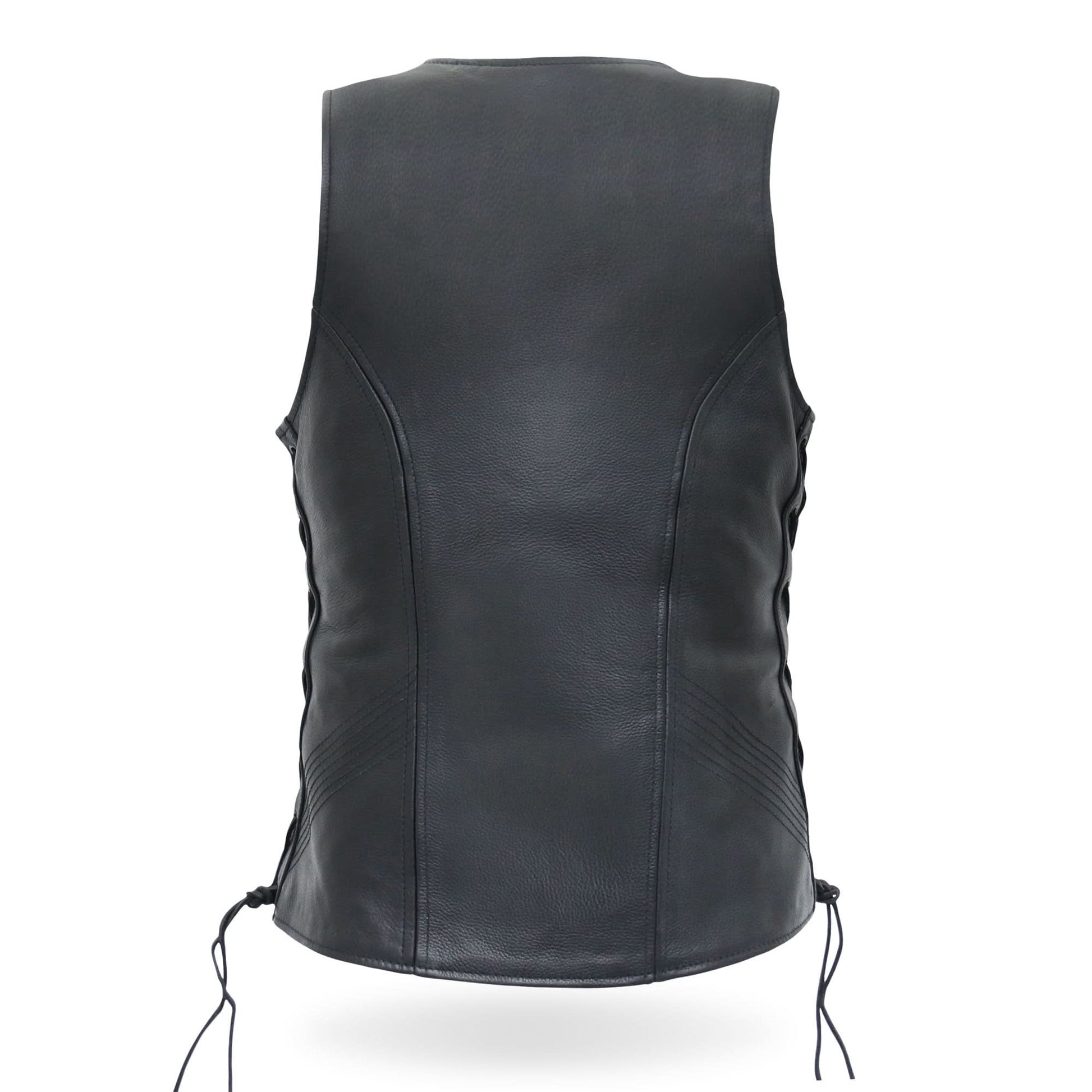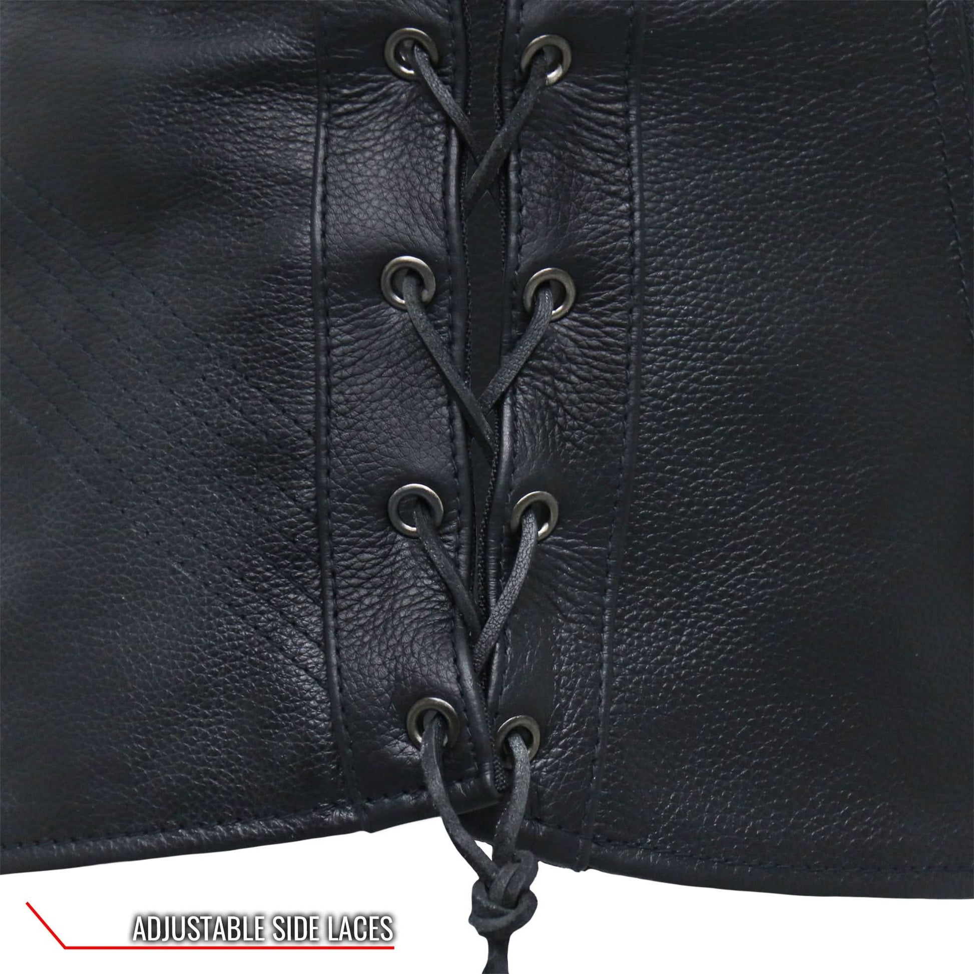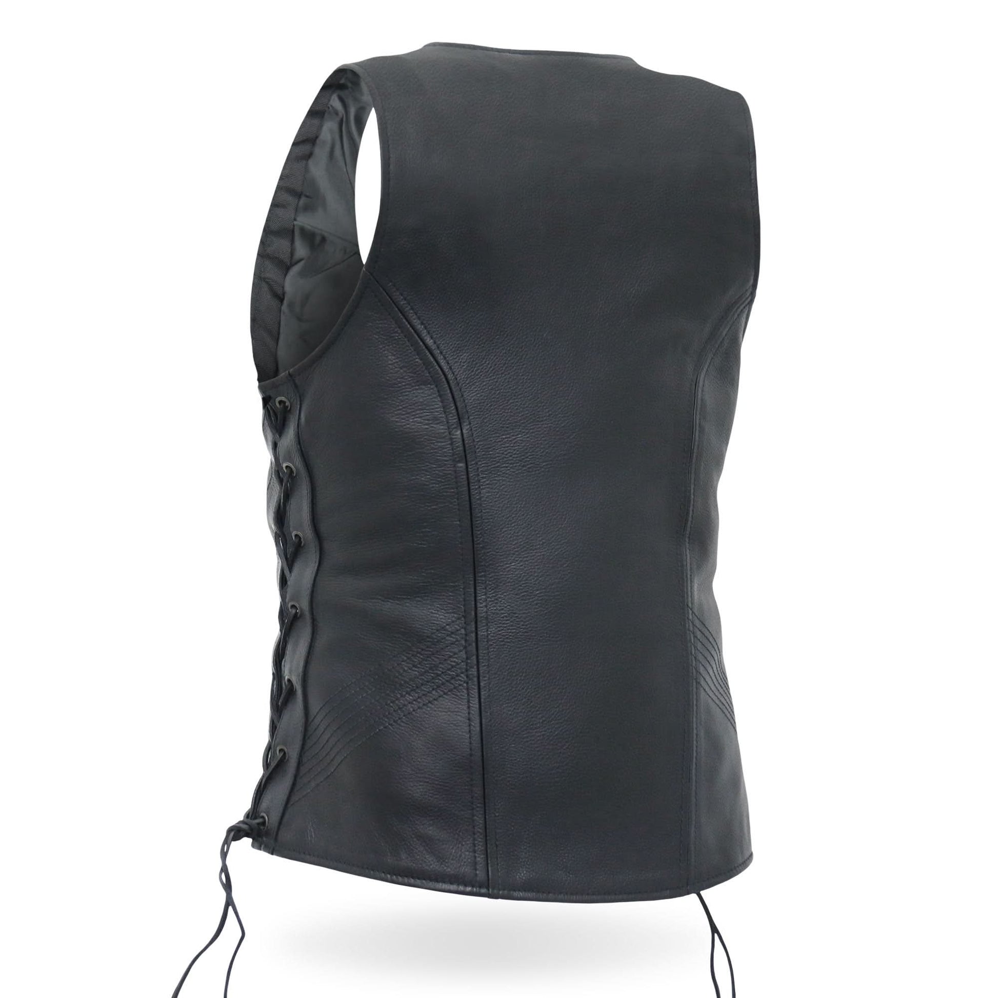 Hot Leathers VSL1013 Ladies motorcycle style Black Leather Side Lace Zip-Up Biker Vest