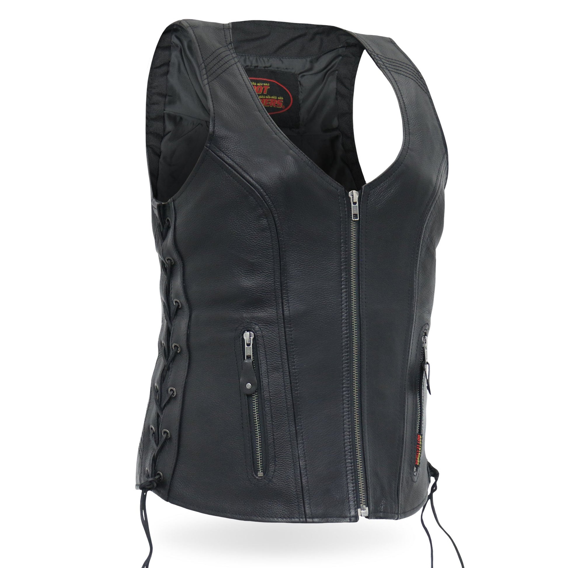 Hot Leathers VSL1013 Ladies motorcycle style Black Leather Side Lace Zip-Up Biker Vest