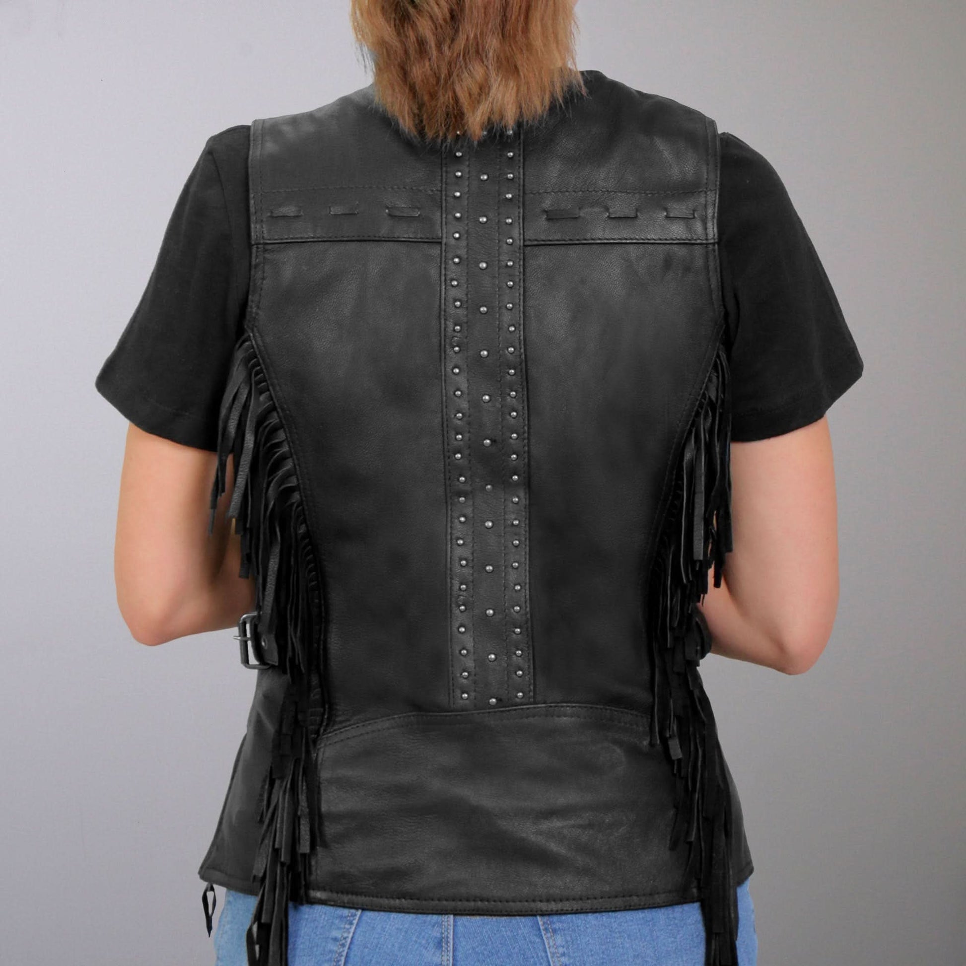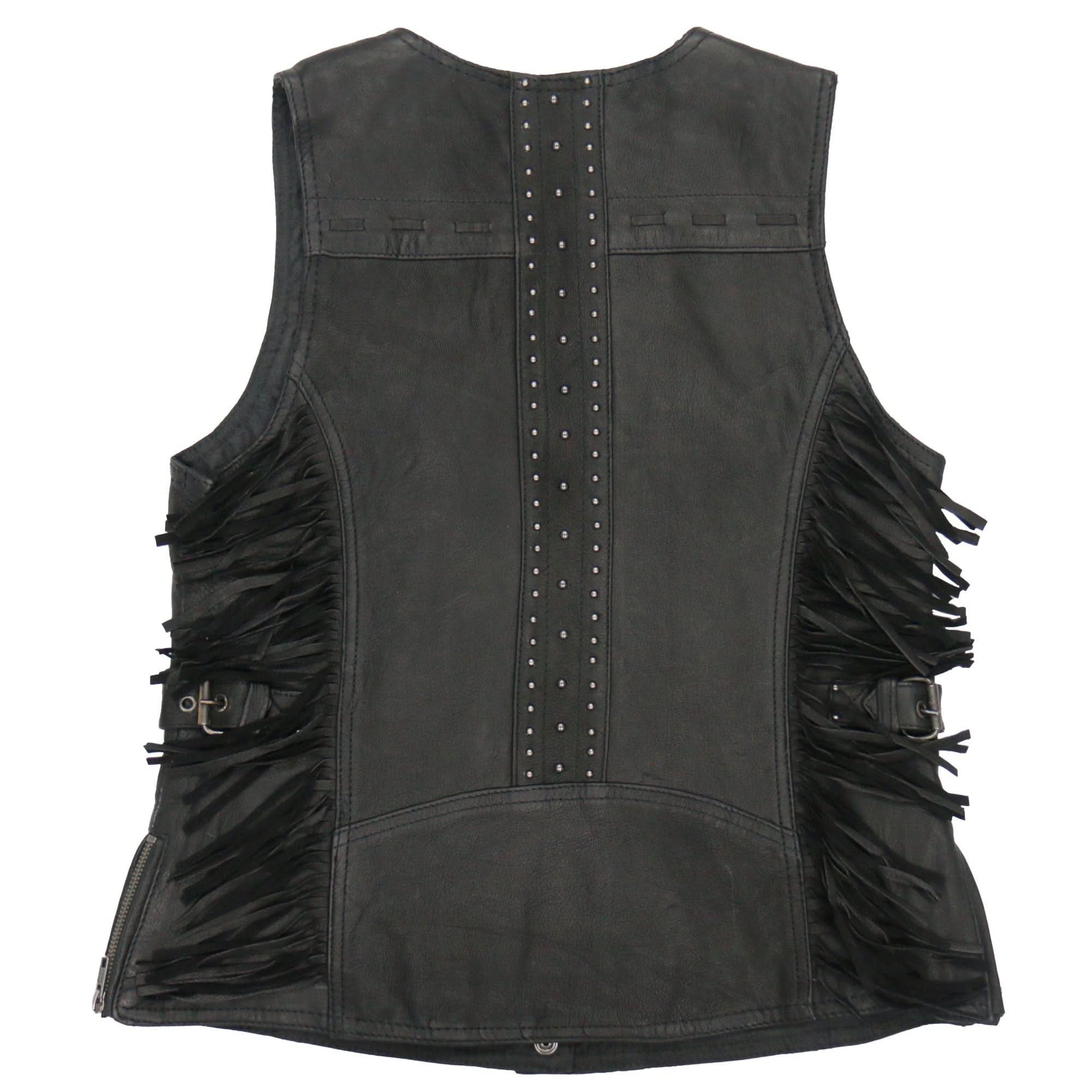 Hot Leathers VSL1014 Ladies Motorcycle style Black Leather Biker Vest with Fringe