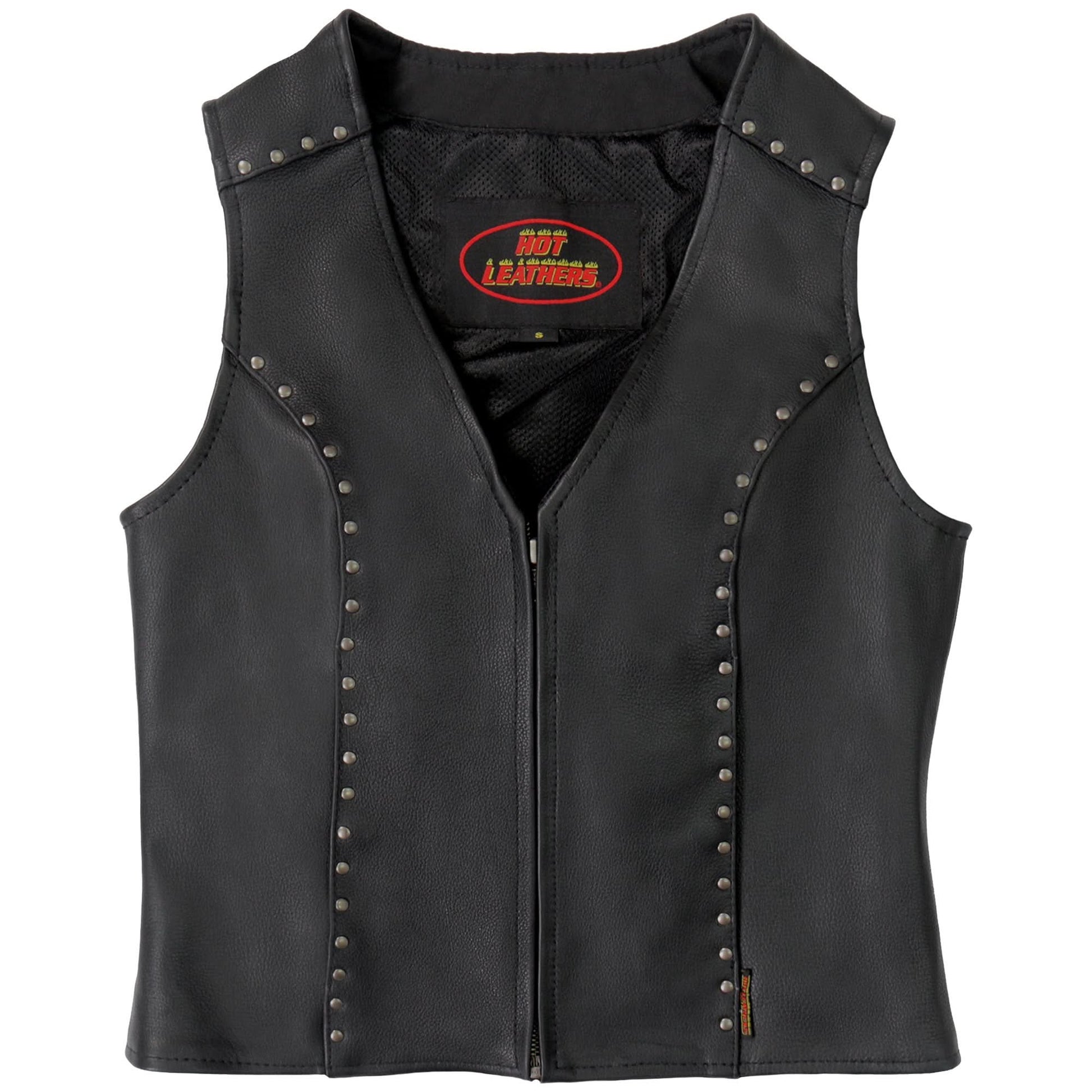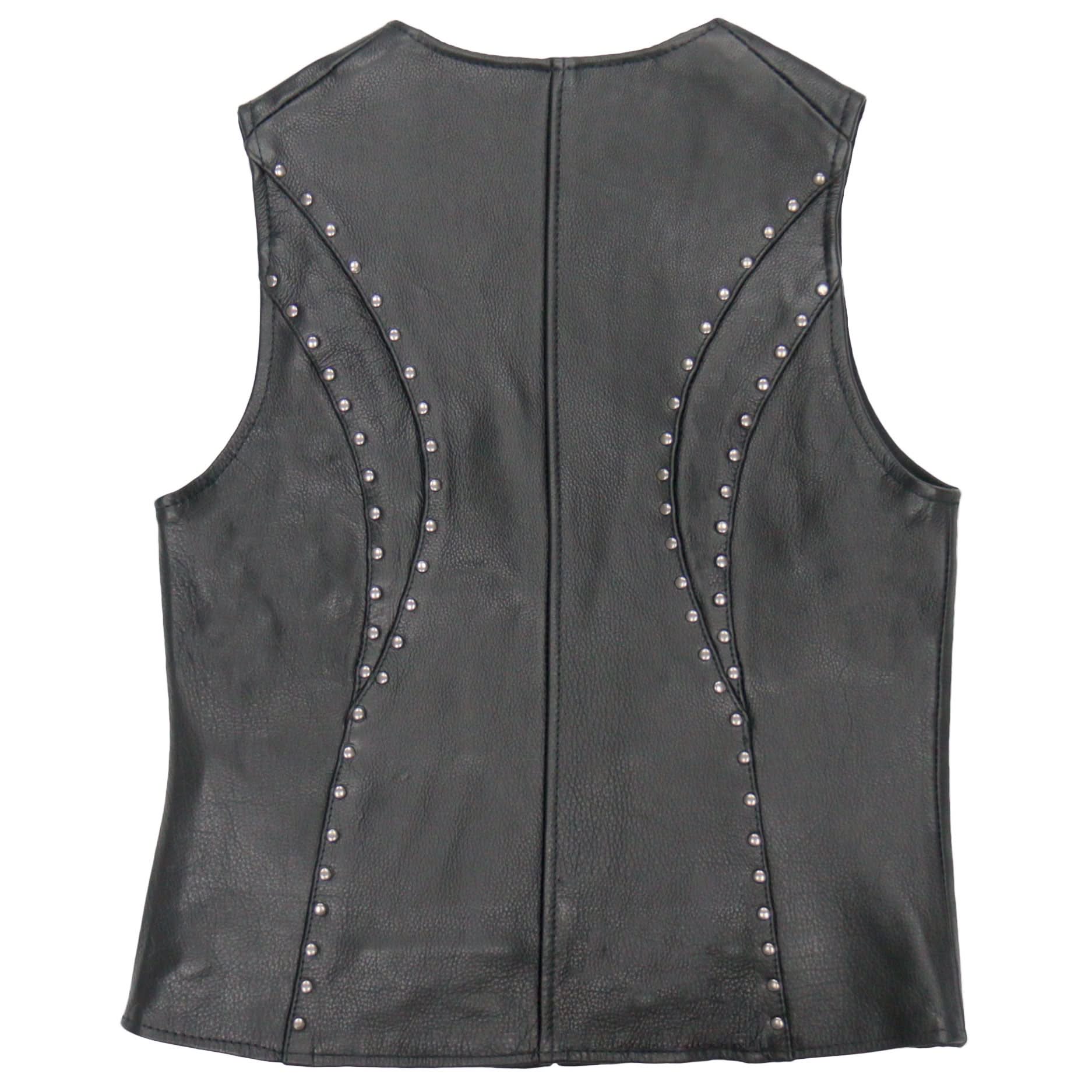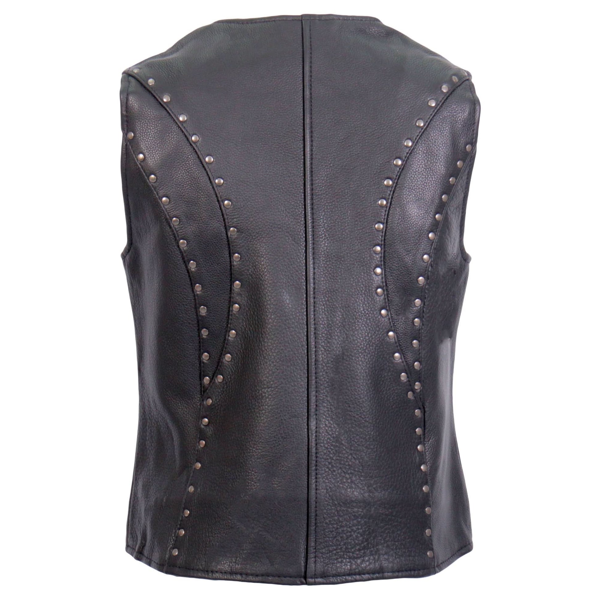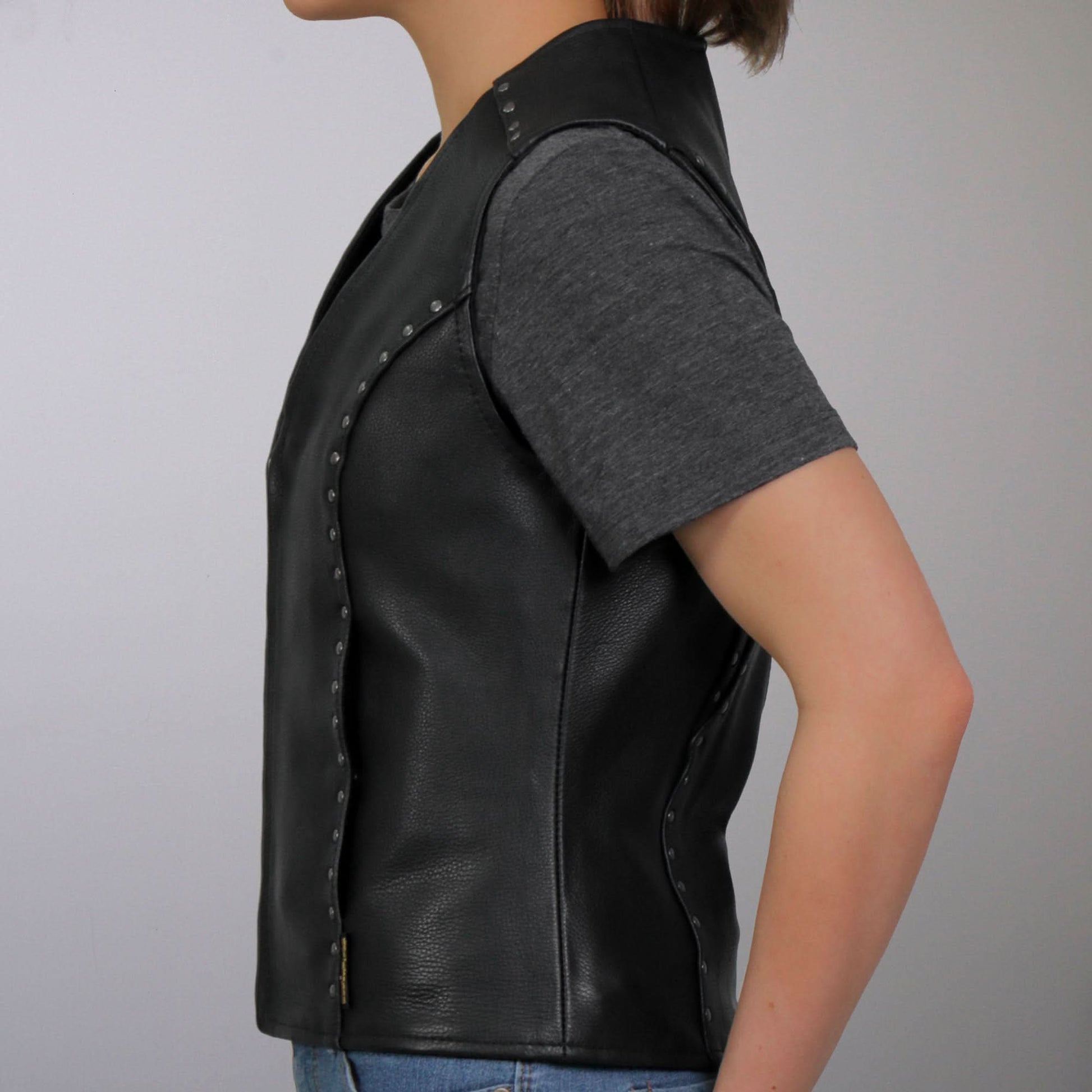 Hot Leathers VSL1015 Ladies Studded Black Motorcycle style Leather Biker Vest with V-Neck Design