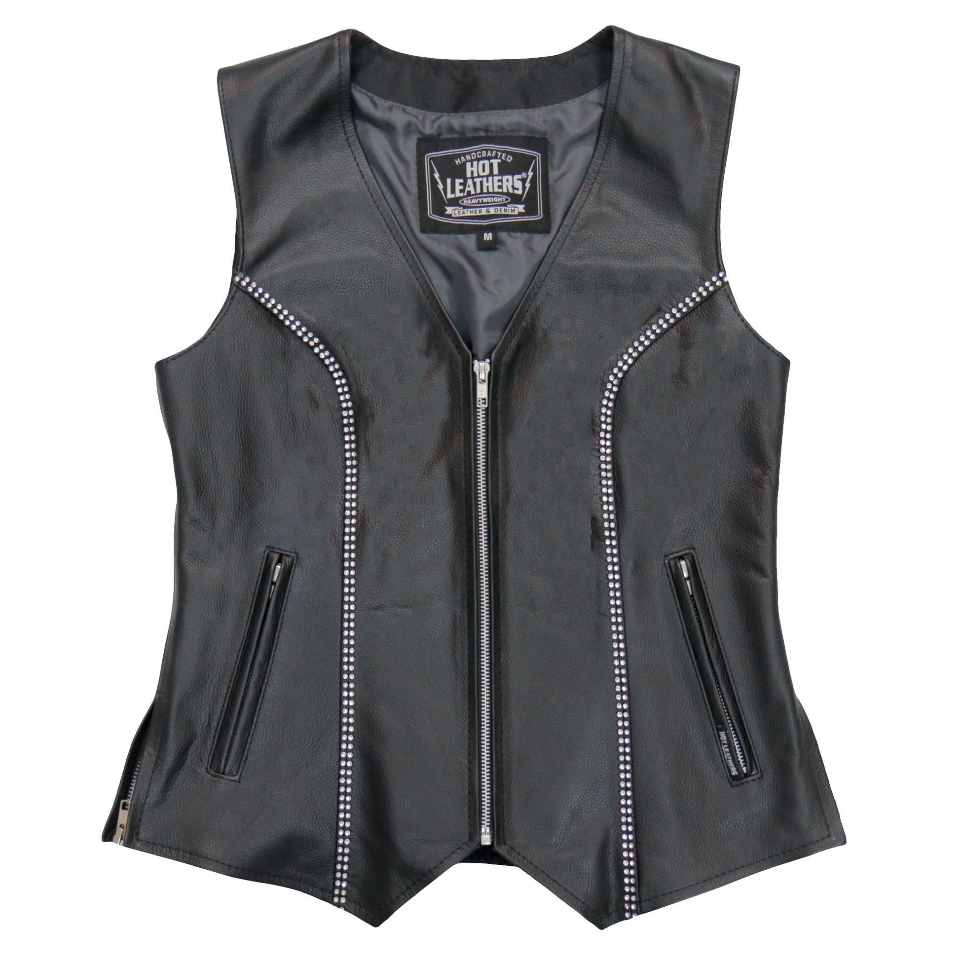 Hot Leathers VSL1016 Ladies Biker 'Rhinestone' Black Leather Motorcycle Vest