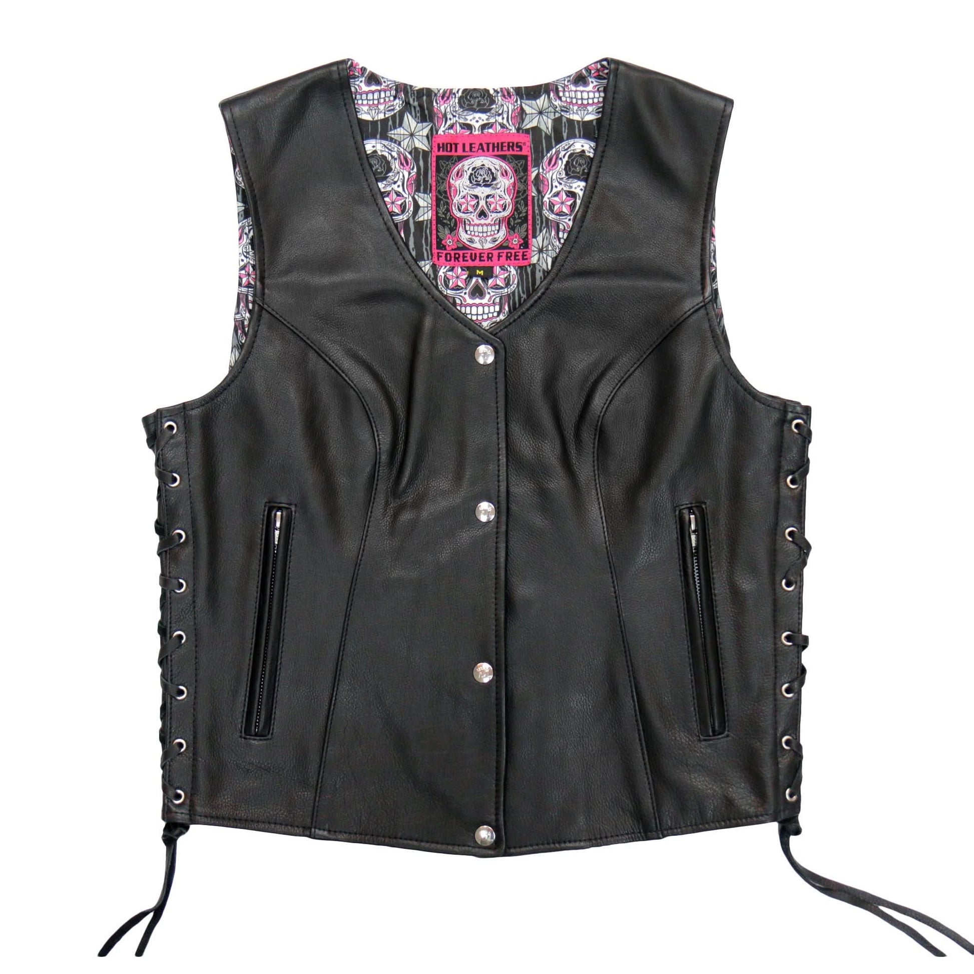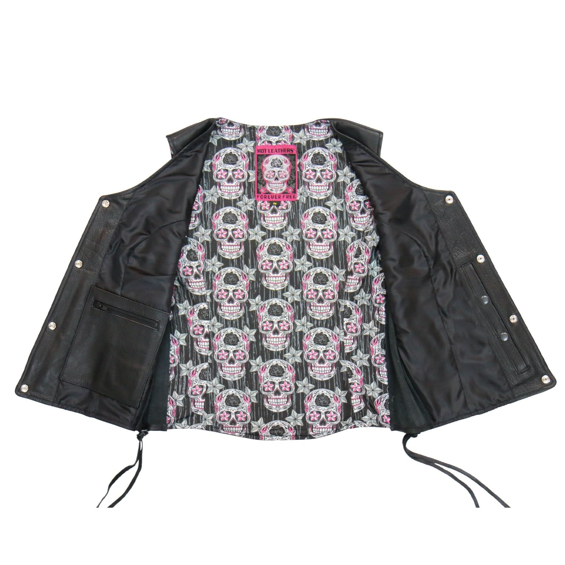 Hot Leathers VSL1017 Ladies 'Sugar Skull' Lined Black Leather Motorcycle Biker Vest