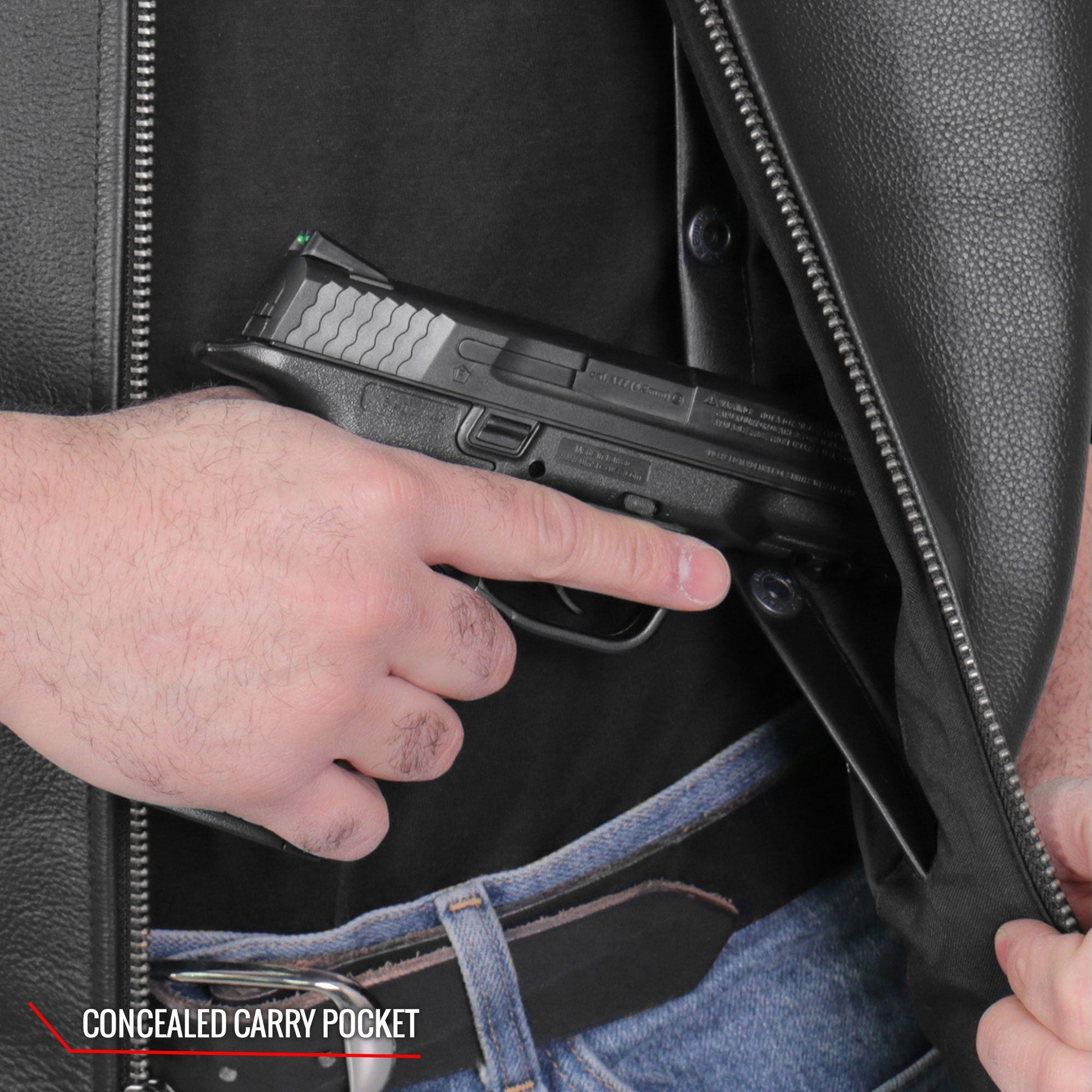 Hot Leathers VSM1036 Men's Black Motorcycle 'Conceal and Carry' Leather Biker Club Zip Vest