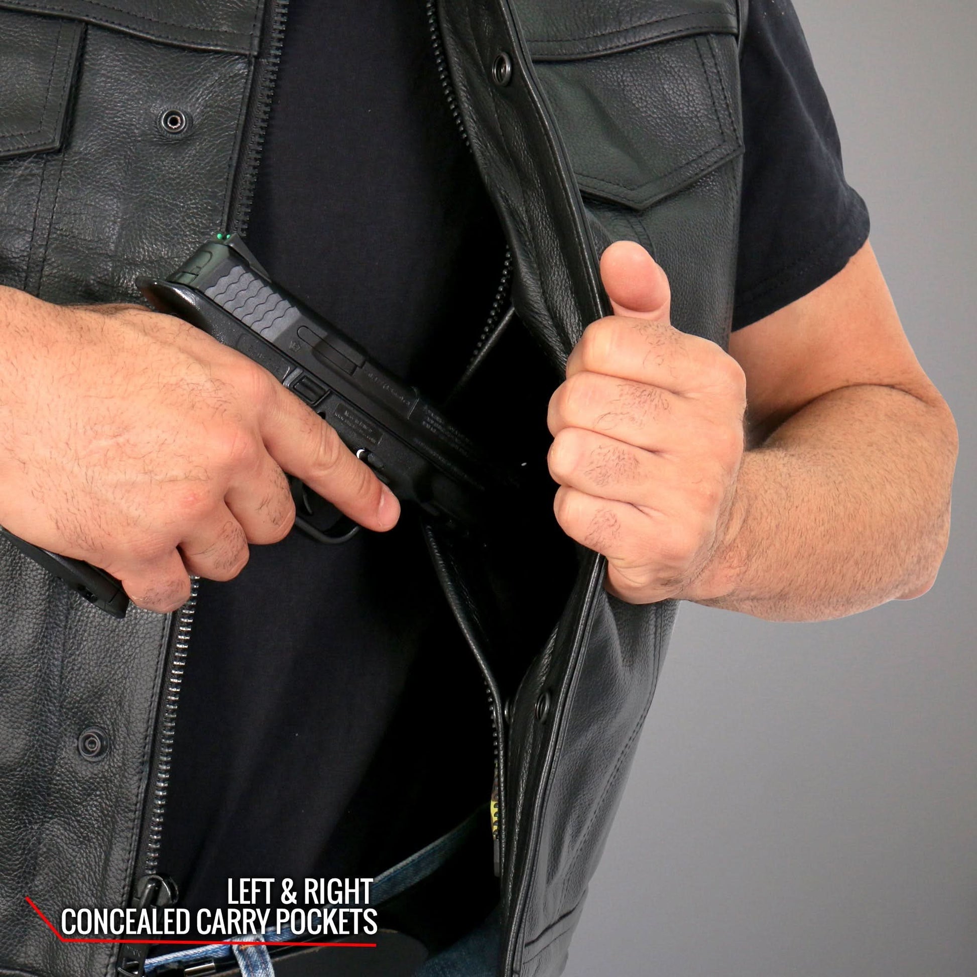 Hot Leathers VSM1056 Men's Black 'Vintage USA Flag' Motorcycle Club Style Conceal and Carry Leather Biker Vest