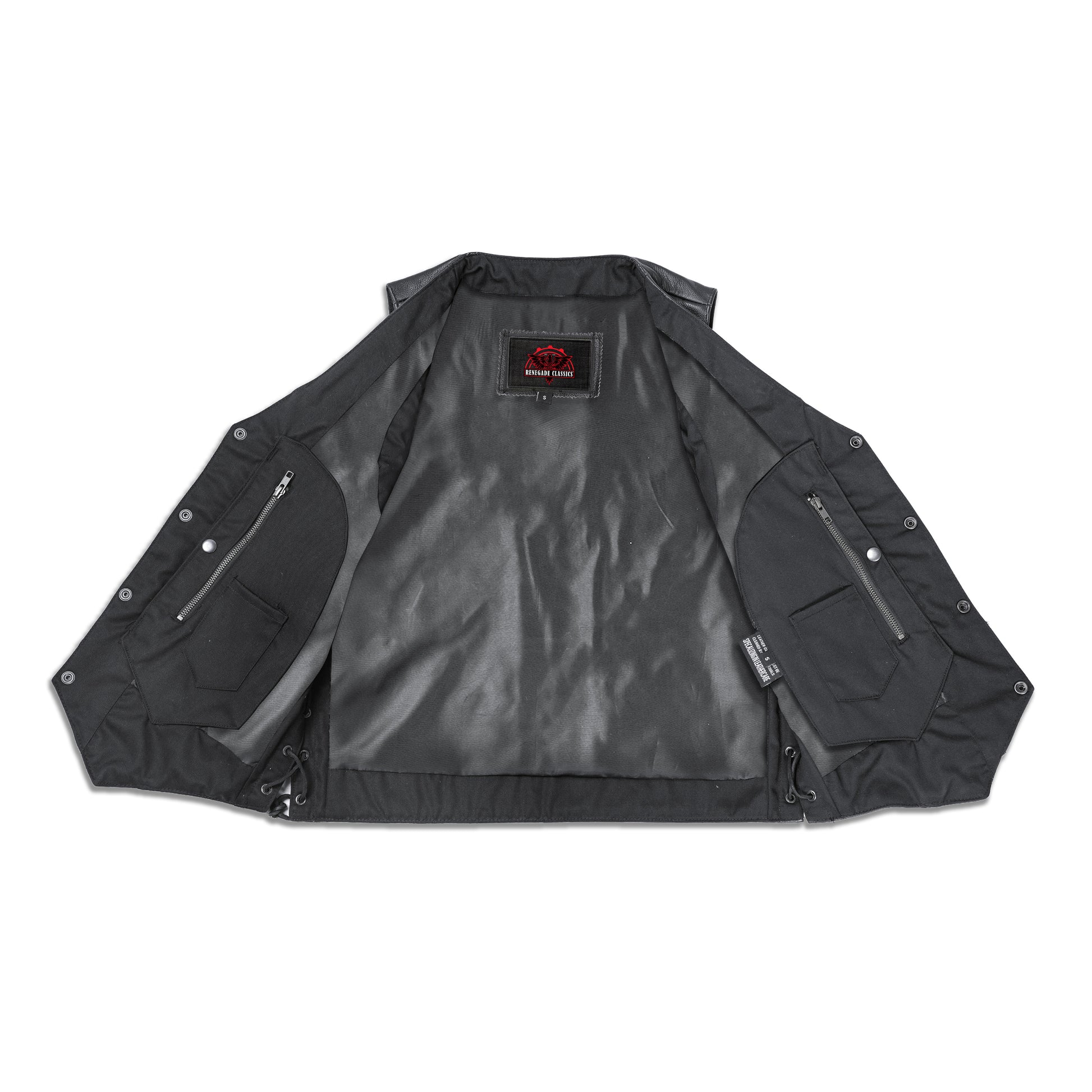 This vest also includes two conceal carry pockets with built-in holsters and snap closures. You can keep your guns properly secured and accessible on and off your bike.