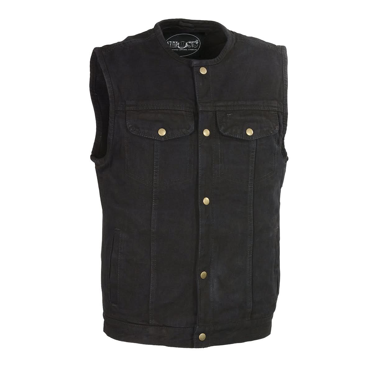 M-Boss Apparel BOS13521 Men's Black Denim Club Style Motorcycle Rider Vest with Conceal/Carry Pockets