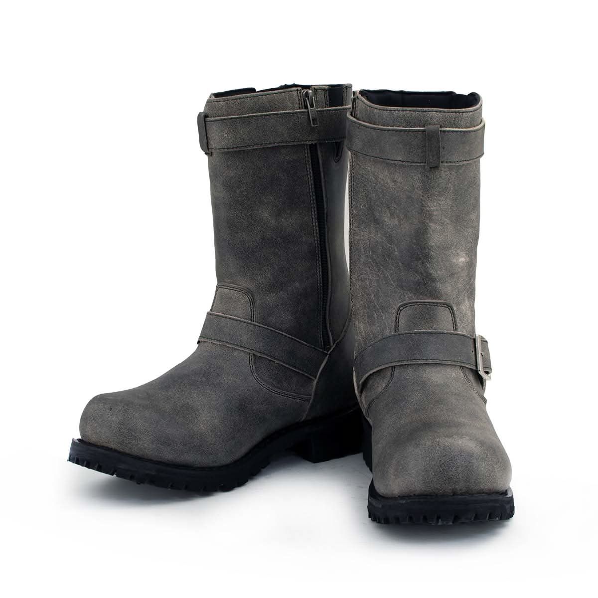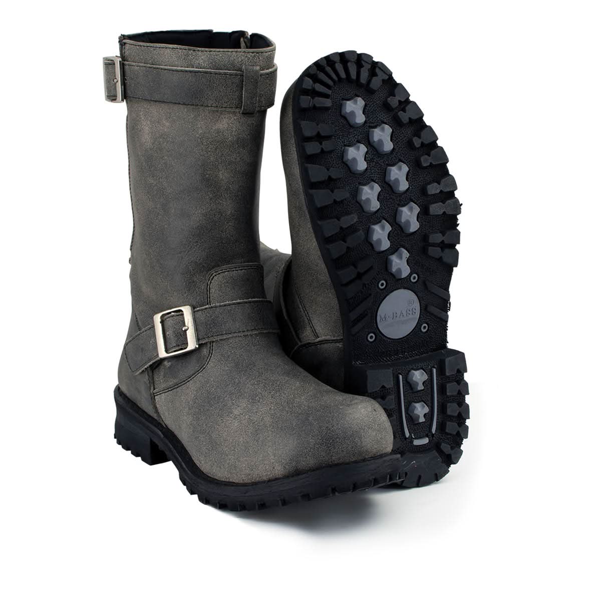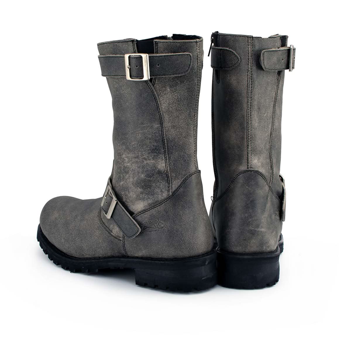 M-Boss Apparel BOS49000 Men's Classic 12-inch Distress Grey Harness Leather Motorcycle Boots