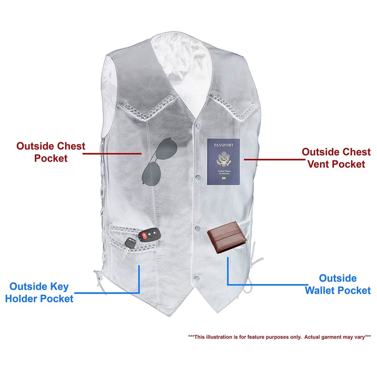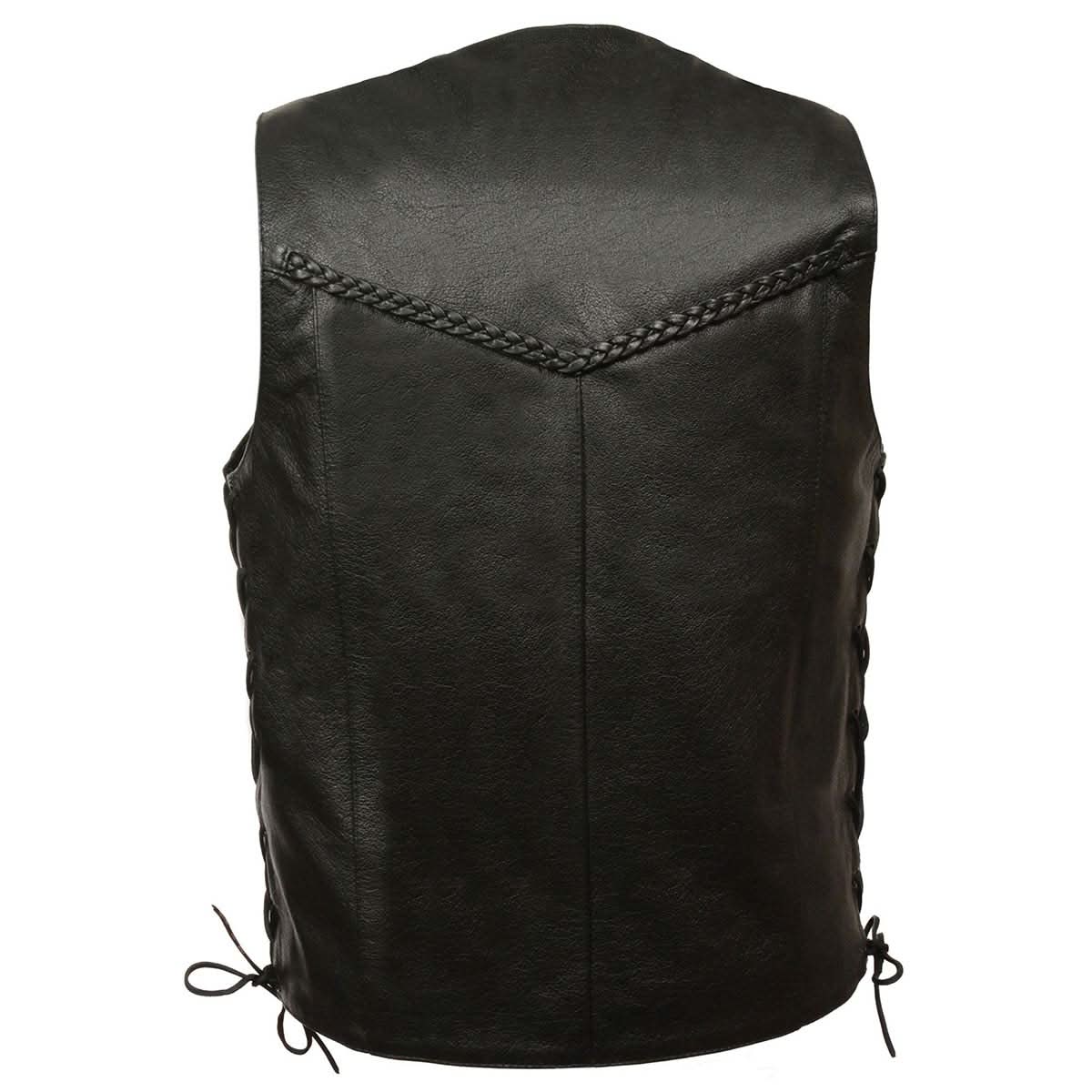 M-Boss Motorcycle Apparel BOS13512 Men’s Braided Motorcycle Biker Leather Vest with Side Laces
