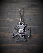BZP-33 Maltese Cross Skull Diamond Zipper Pull