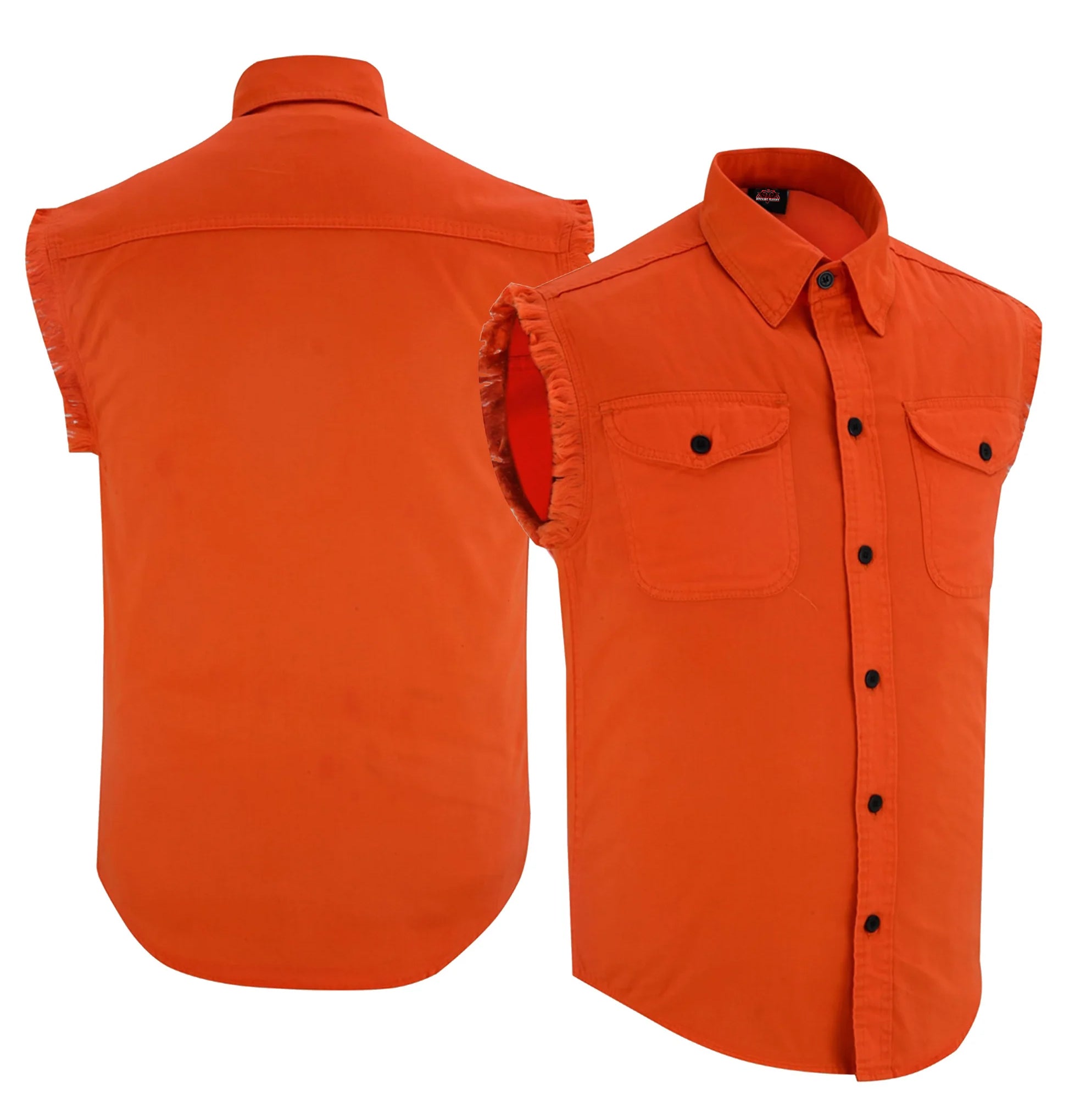 Men's Orange Lightweight Sleeveless Mens Denim Shirt