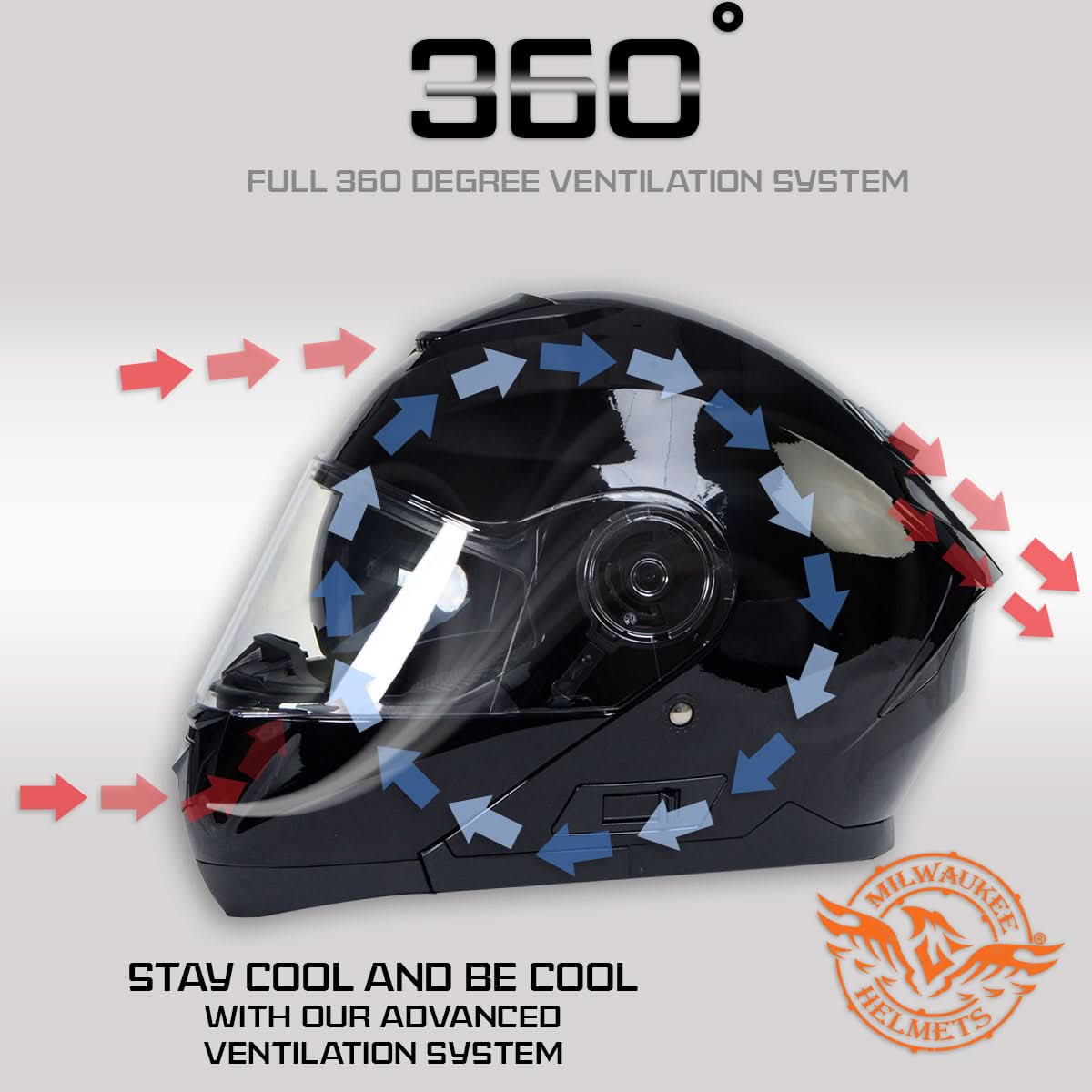 Milwaukee Helmets MPH9815DOT 'Breeze' Gloss Black Modular Helmet for Men and Women Biker w/ MP7922FMSET Heated Balaclava Bundle