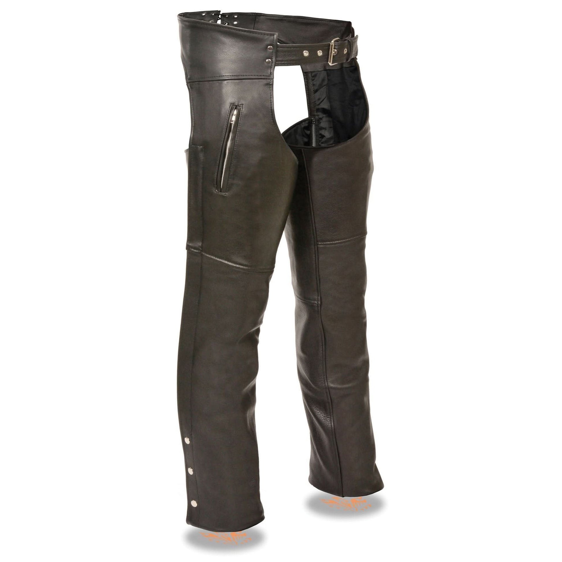 - Protective Chaps | All-seasons black leather chaps feature a breathable mesh liner for warm weather conditions, providing airflow and comfort as well as genuine thick leather to protect you in wintery weather. These chaps provide the flexibility to customize the length of the unhemmed chaps by easily cutting the bottom with scissors to your desired length, a perfect outfit for every ride and versatile collection in your wardrobe.
