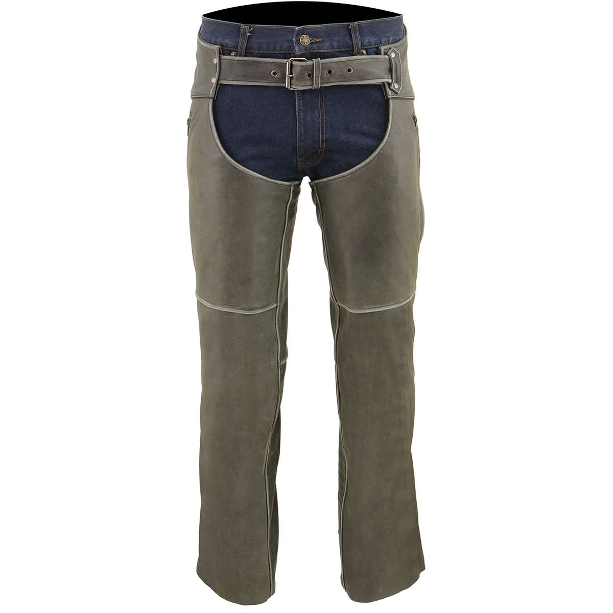 Milwaukee Leather MLM5536 Men's Vintage Distressed Grey Slate Chap with Deep Thigh Zippered Pockets