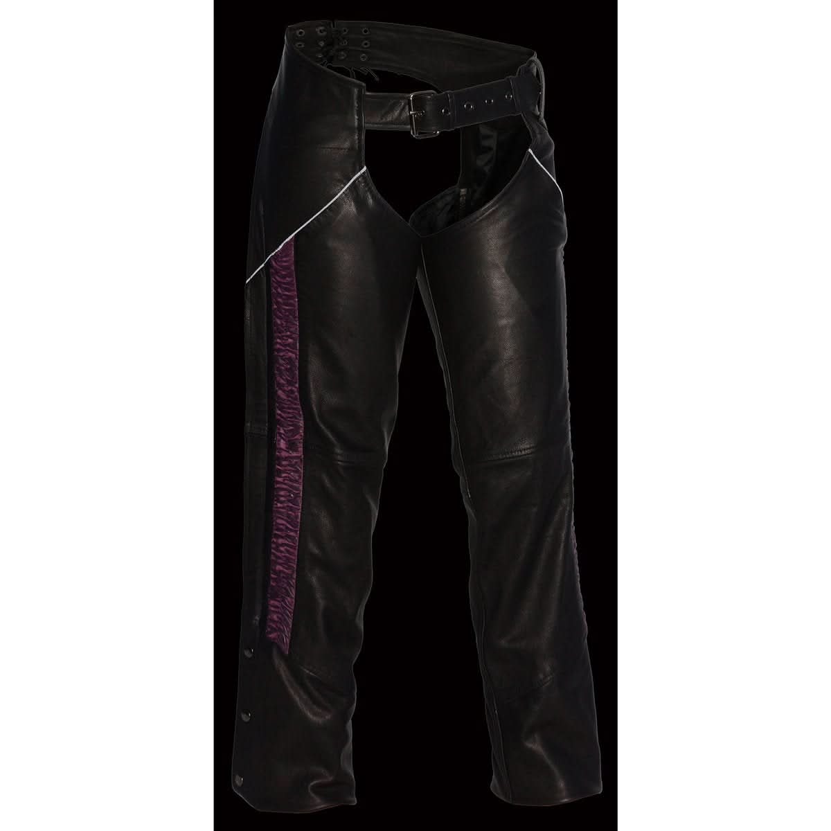 Milwaukee Leather MLL6501 Women’s Black and Pink Lightweight Low-Rise Chap with Crinkled Leg Striping