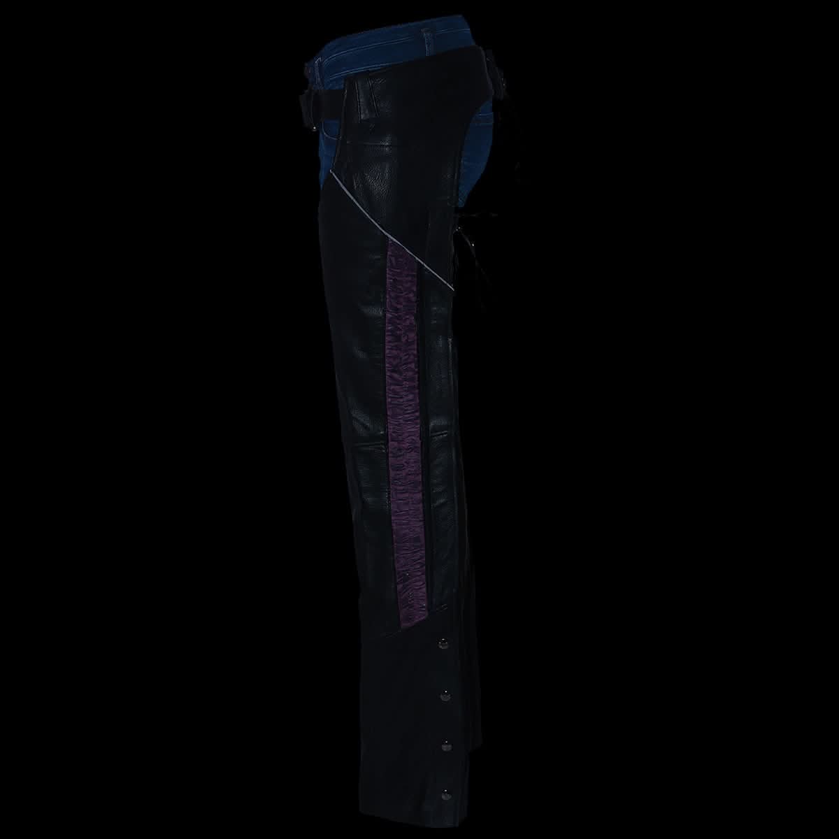 Milwaukee Leather MLL6501 Women’s Black and Purple Lightweight Low-Rise Chap with Crinkled Leg Striping