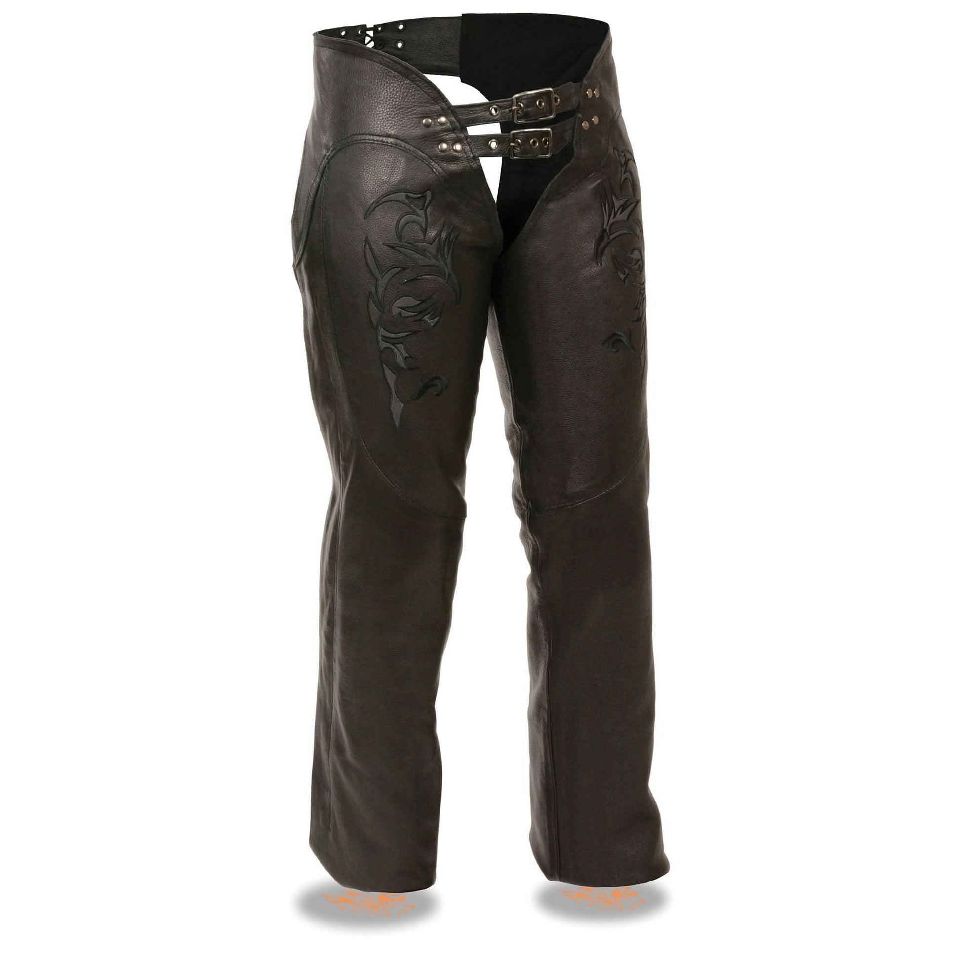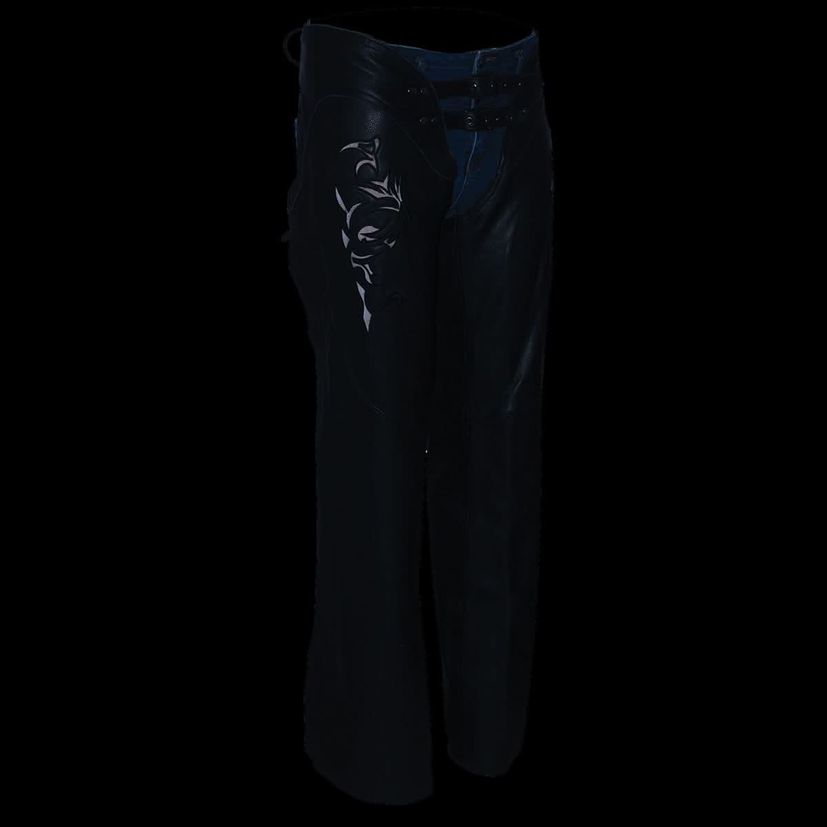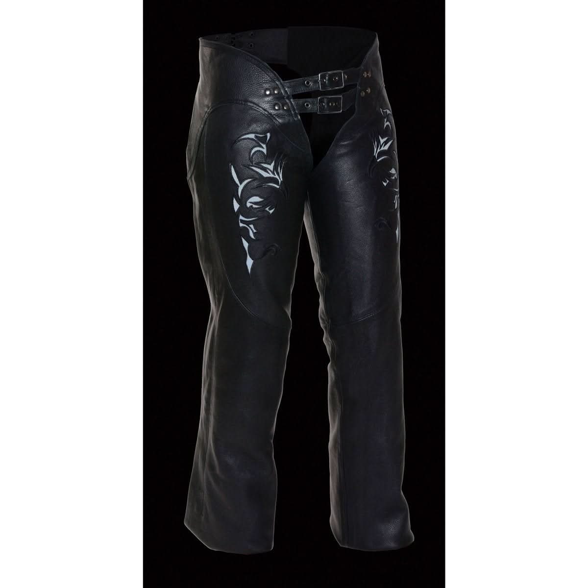Milwaukee Leather ML1187 Women's Black Chaps with Reflective Tribal Embroidery
