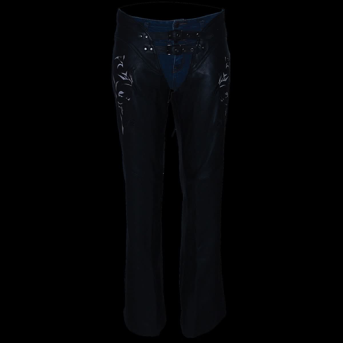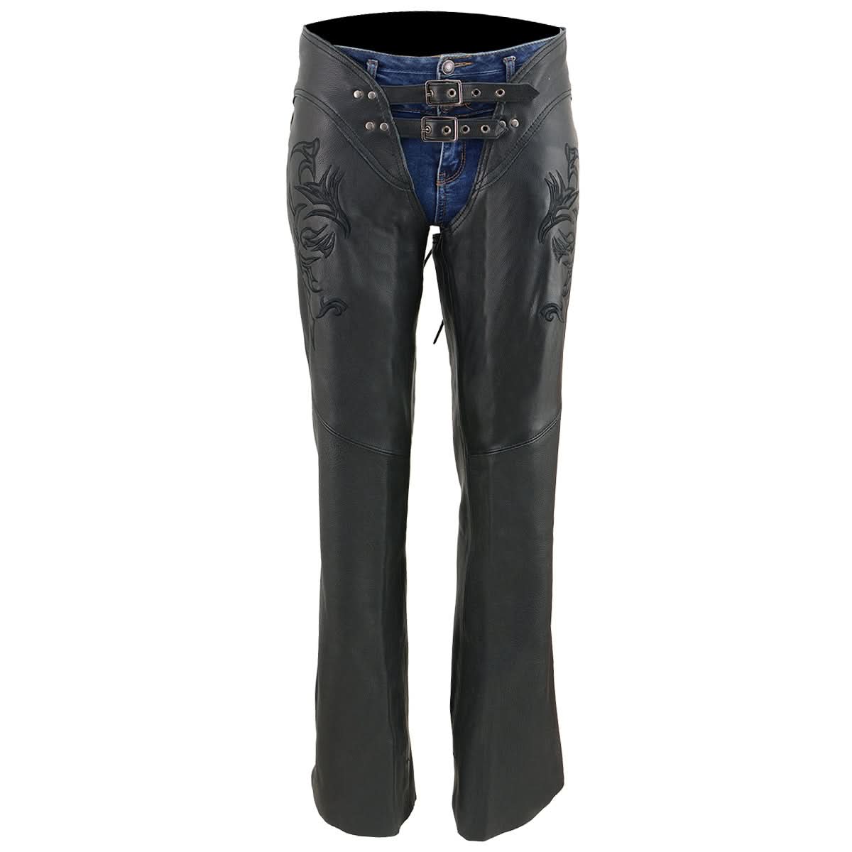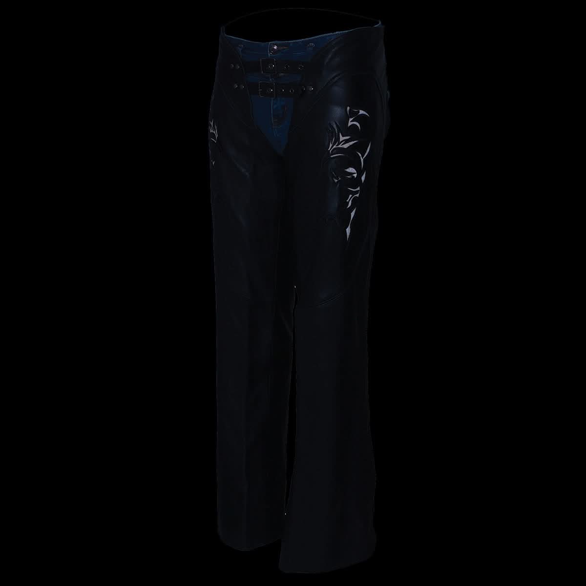 Milwaukee Leather ML1187 Women's Black Chaps with Reflective Tribal Embroidery