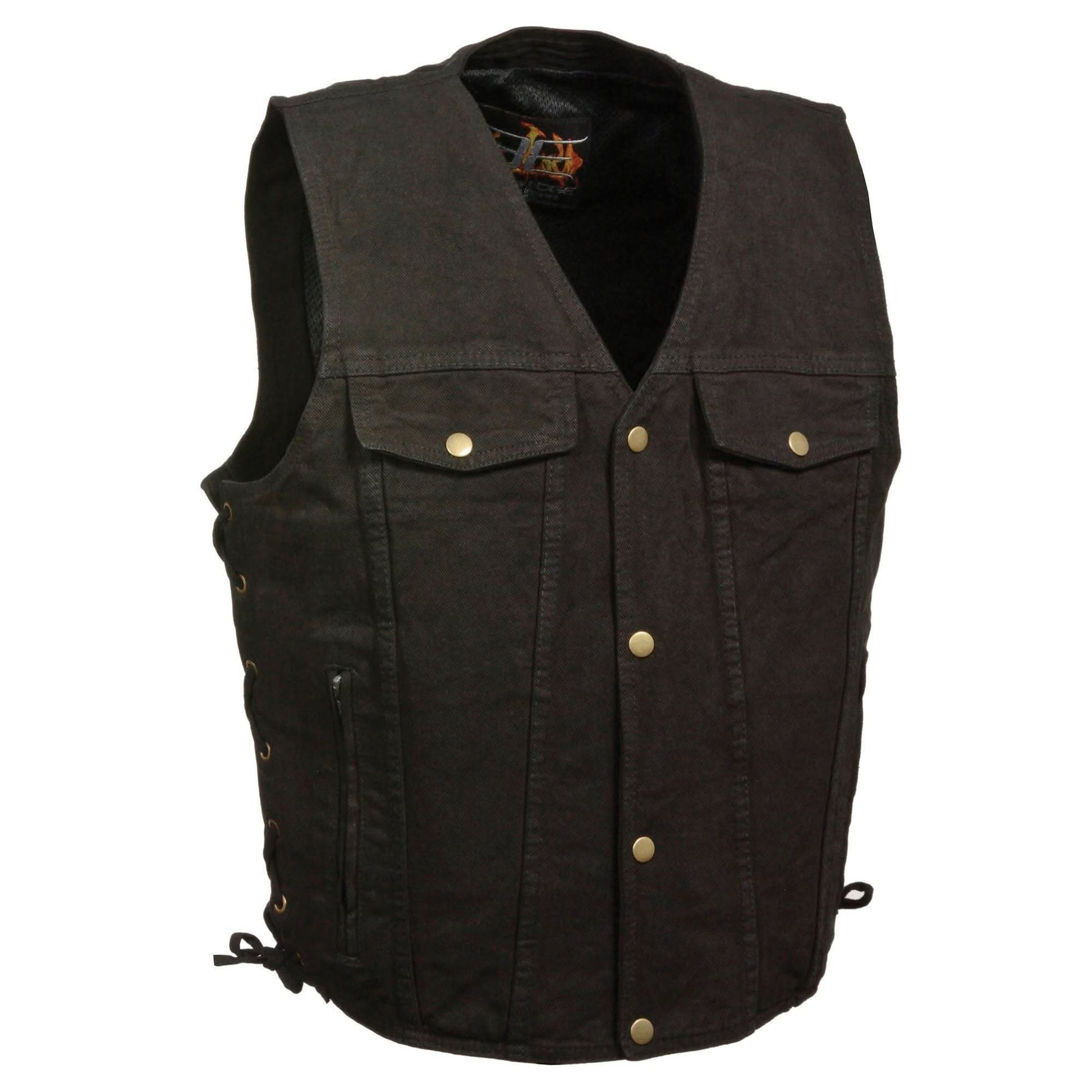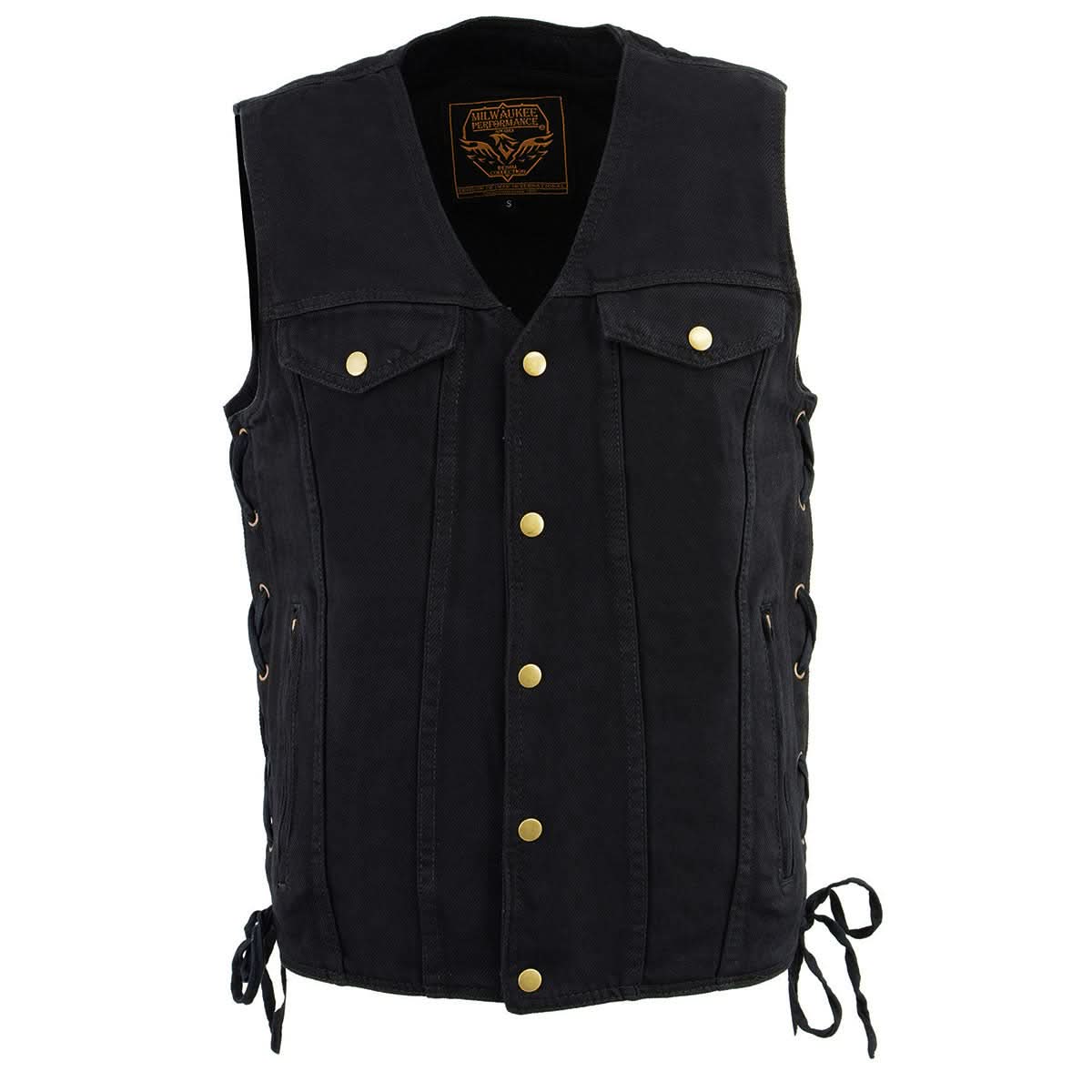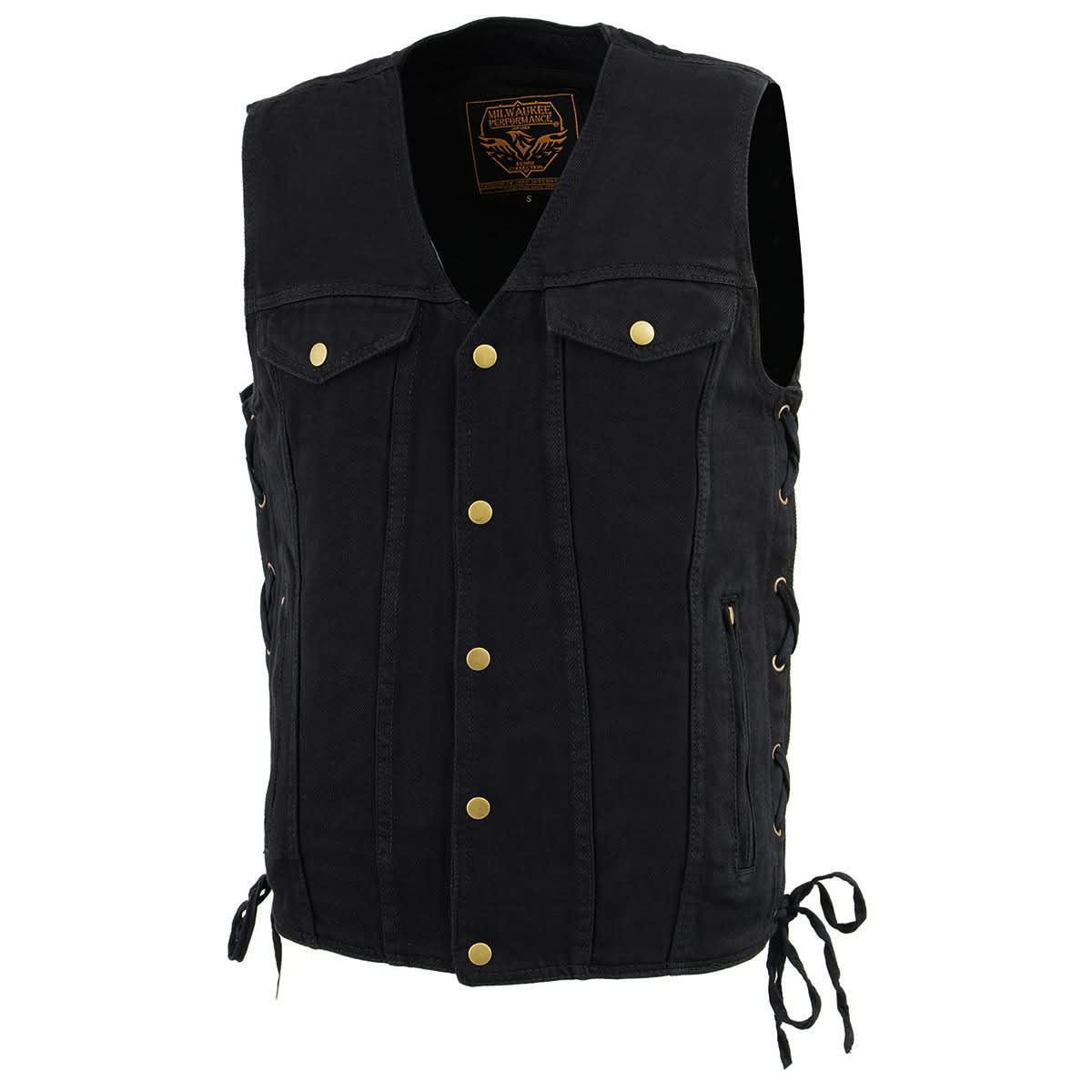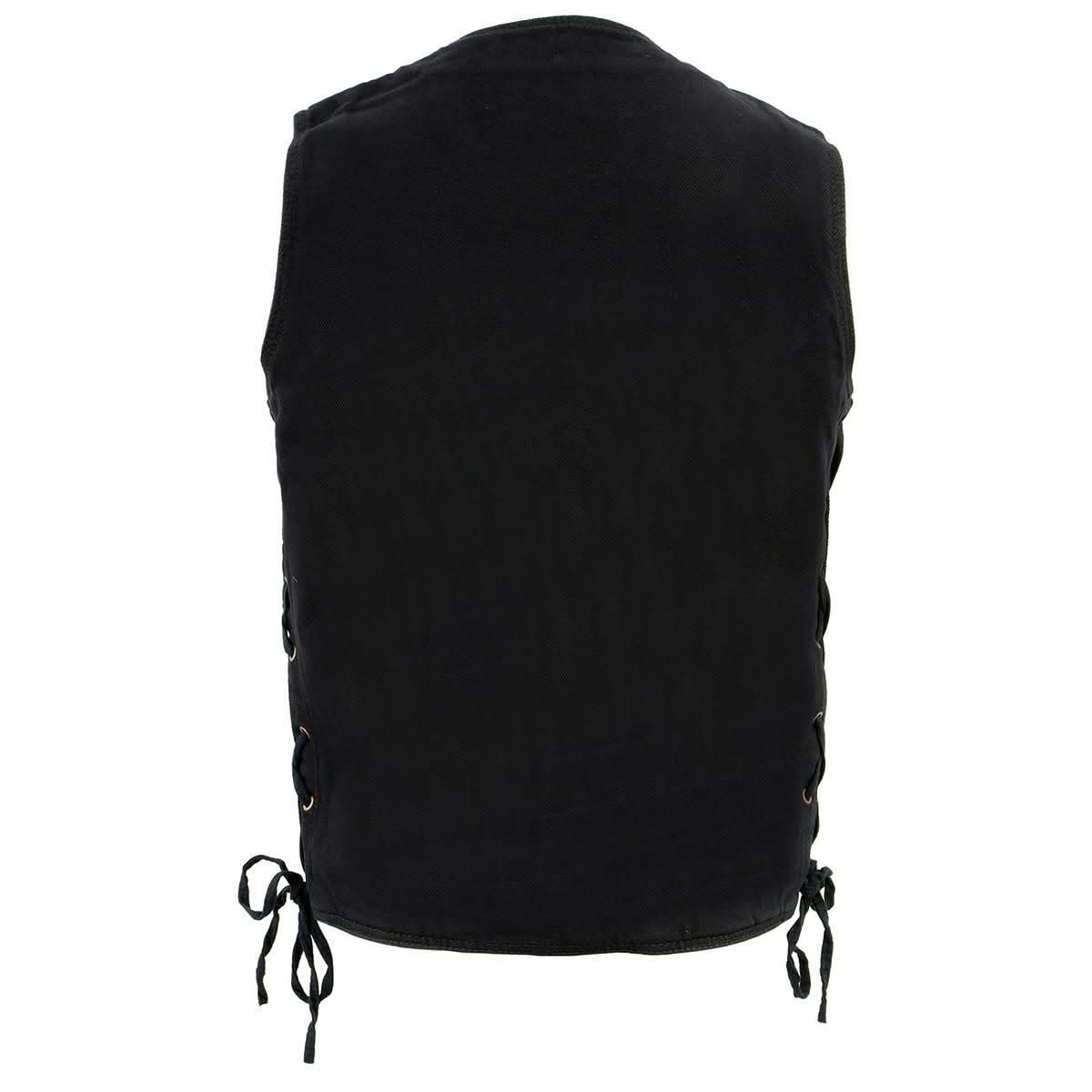 Milwaukee Leather DM1360 Men's Classic Black Denim Motorcycle Biker Riders Vest w/ Adjustable Side Laces