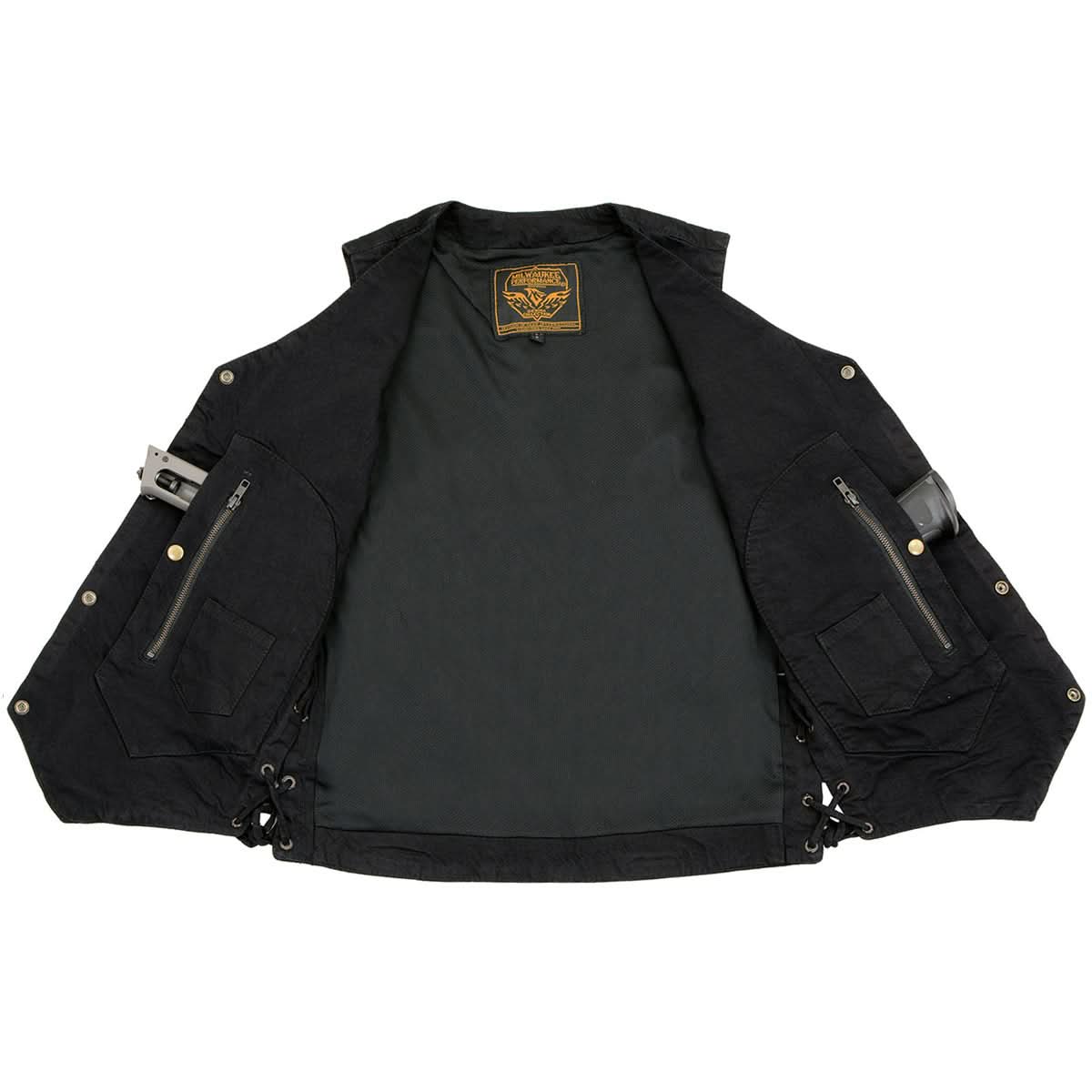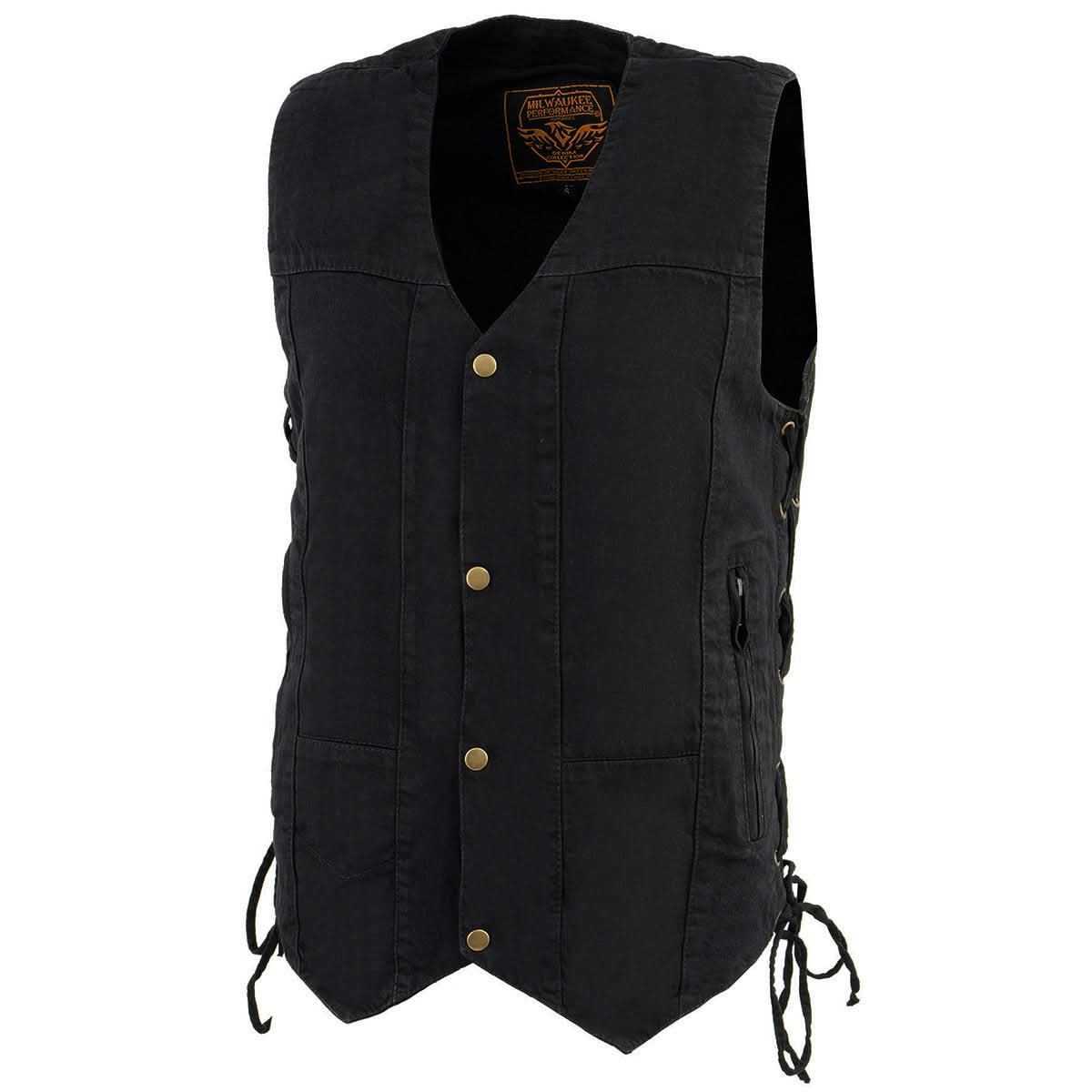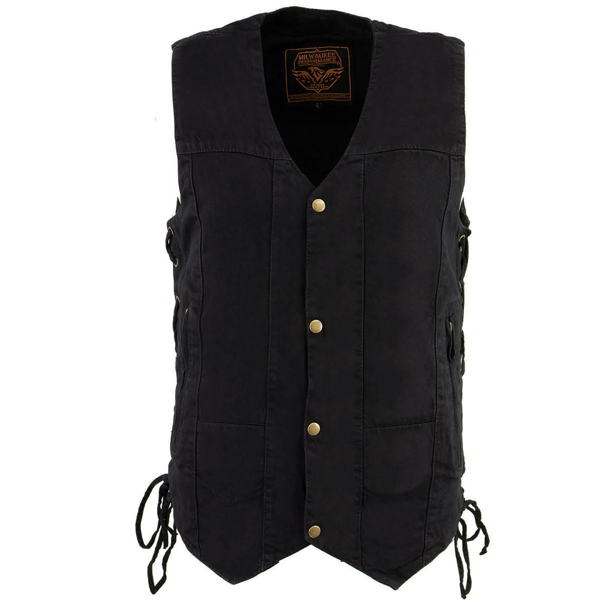 Milwaukee Leather DM1990 Men's Black 10 Pocket Side Lace Denim Vest