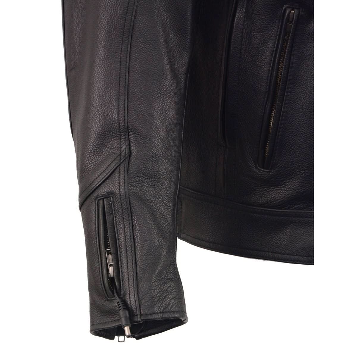 Milwaukee Leather Heated Jacket for Men's Black Cowhide Leather - Motorcycle Vented Jacket for All Seasons MLM1513