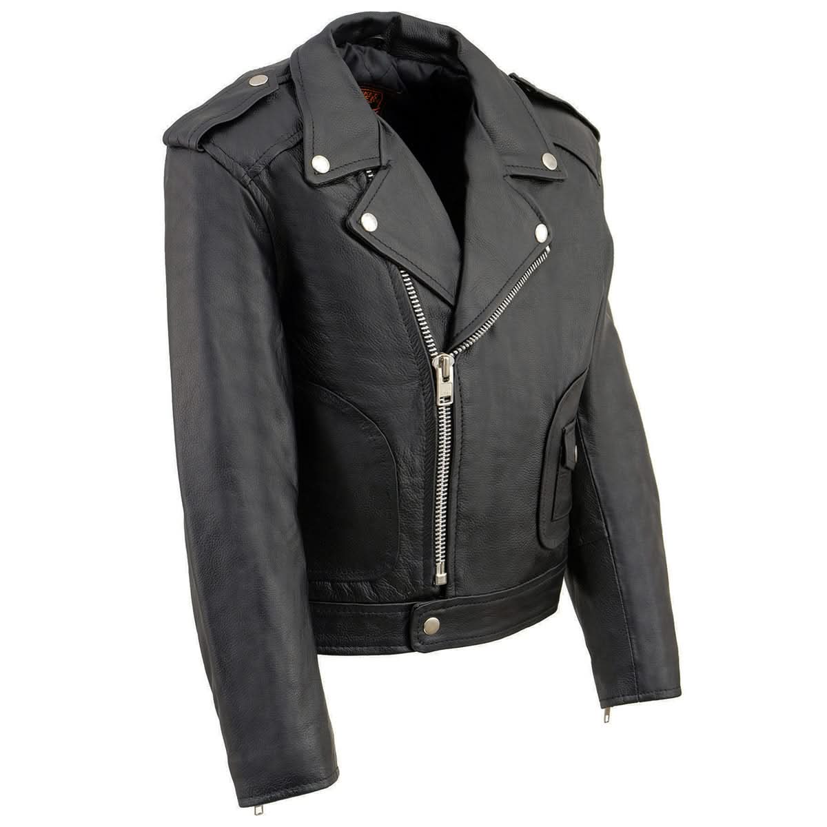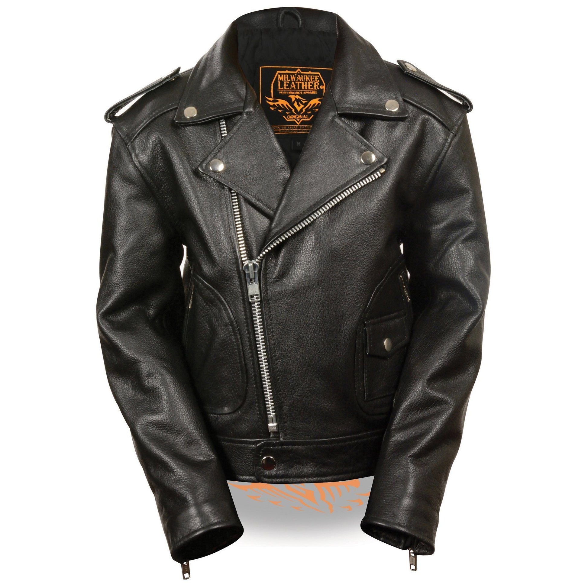 Milwaukee Leather LKK1920 Boy's Black Classic Leather Biker Jacket with Patch Pocket Style