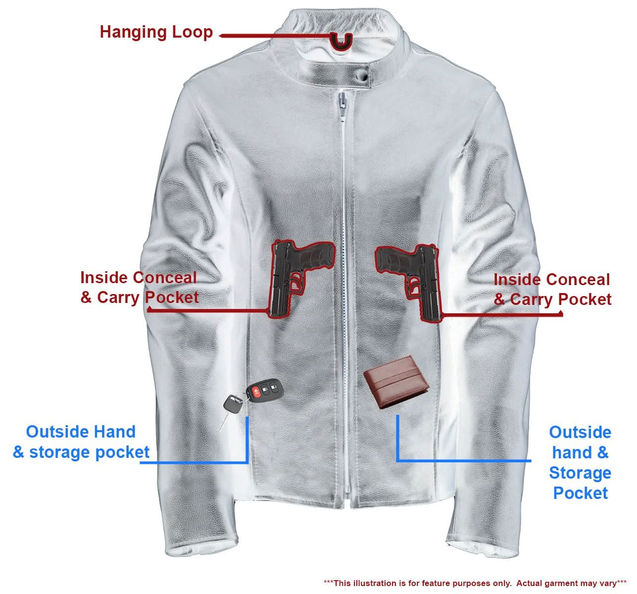 - Conceal and Carry Your Piece with Dual Inside Left and Right Storage Pockets (Can Be Used as Regular Large Storage Pockets If You Don’t Carry)