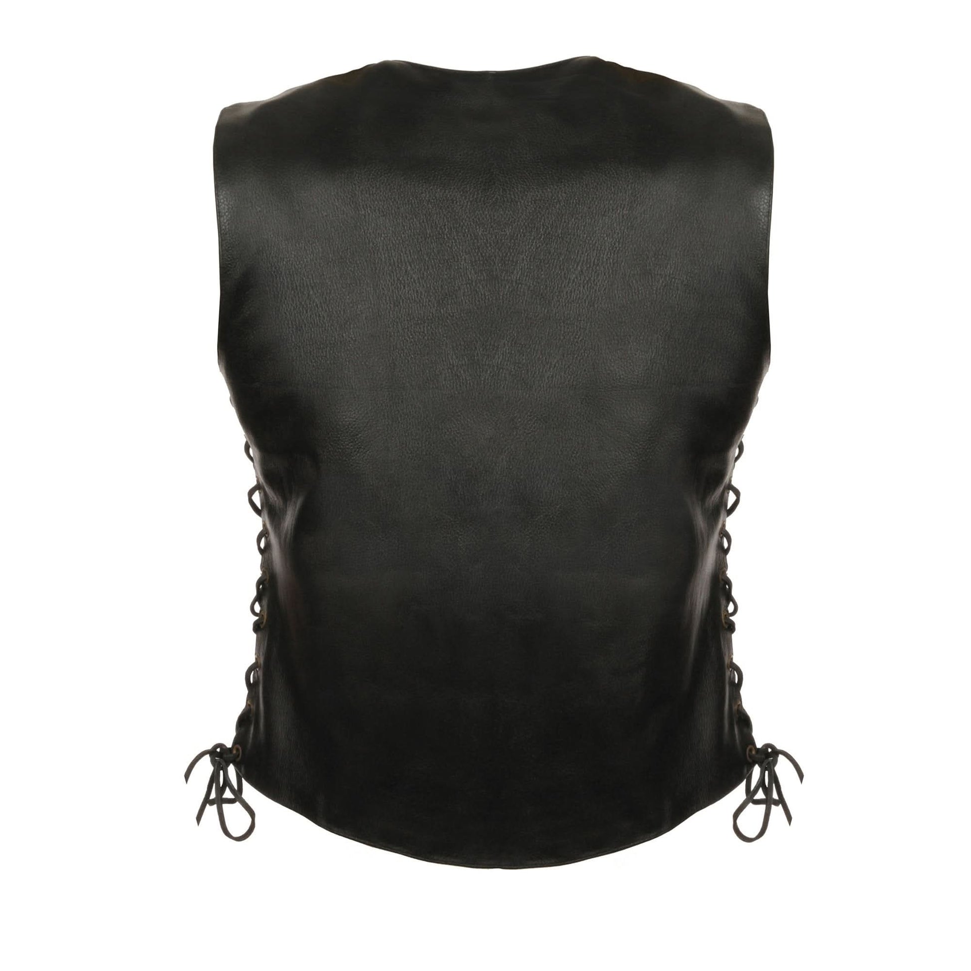 Milwaukee Leather LKL4700 Women's Black Premium Leather Side Laced Motorcycle Biker Riders Vest w/ Snap Closure