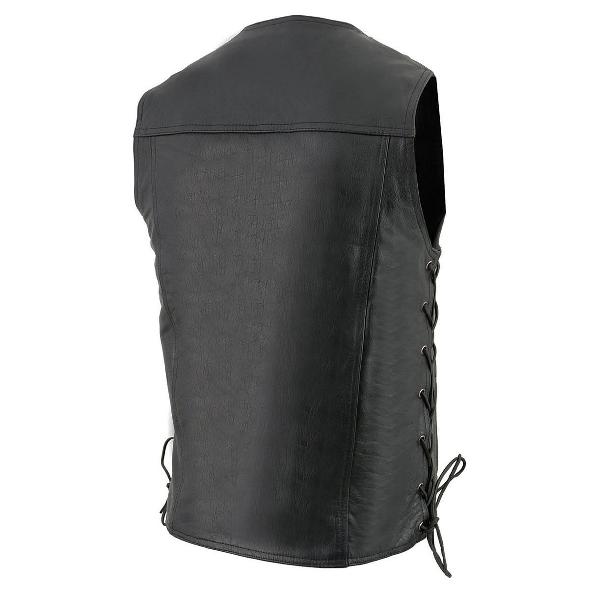 Milwaukee Leather LKM1360 Men's Black Leather Classic V-Neck Motorcycle Rider Vest w/ Snaps and Side Laces Closure