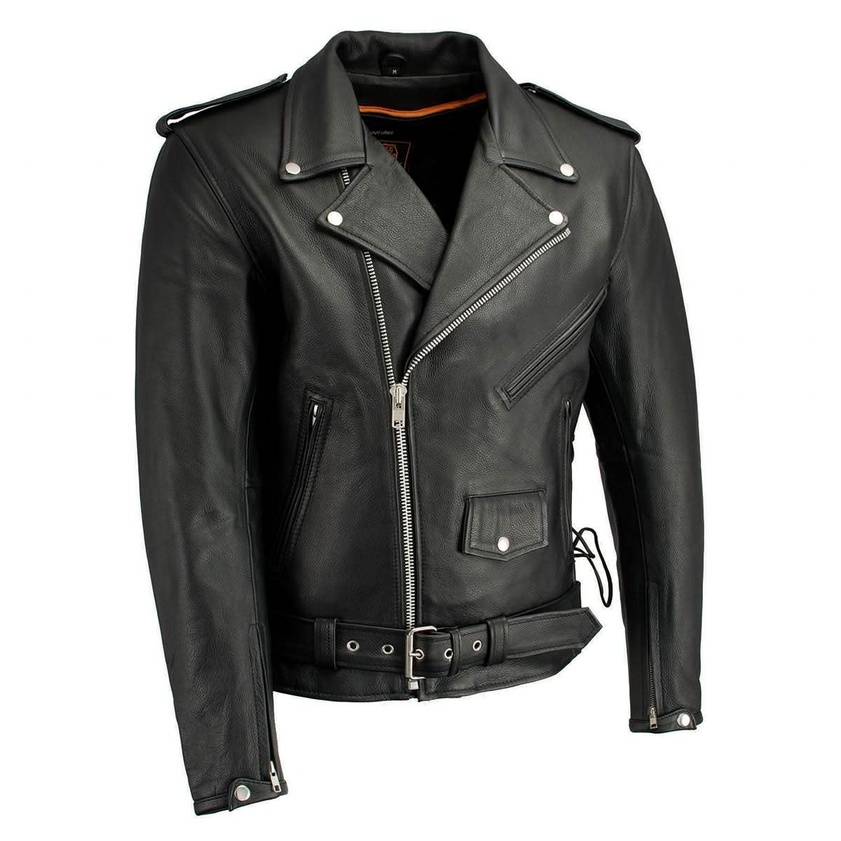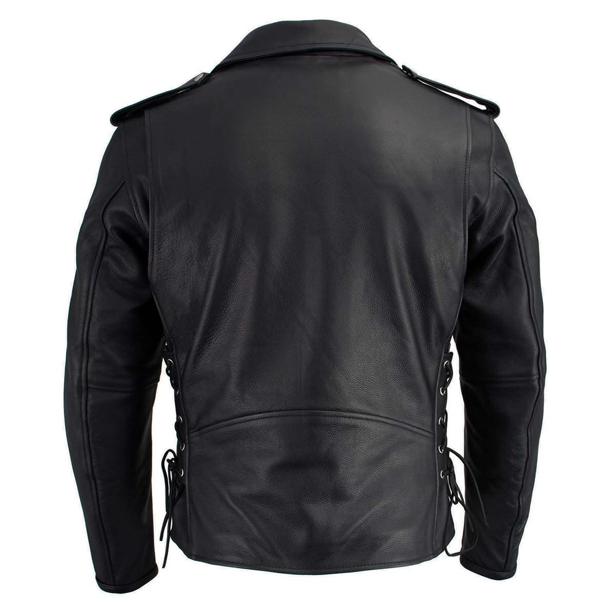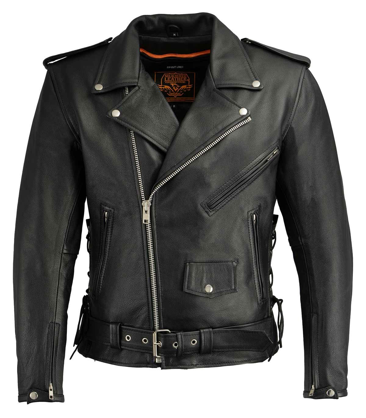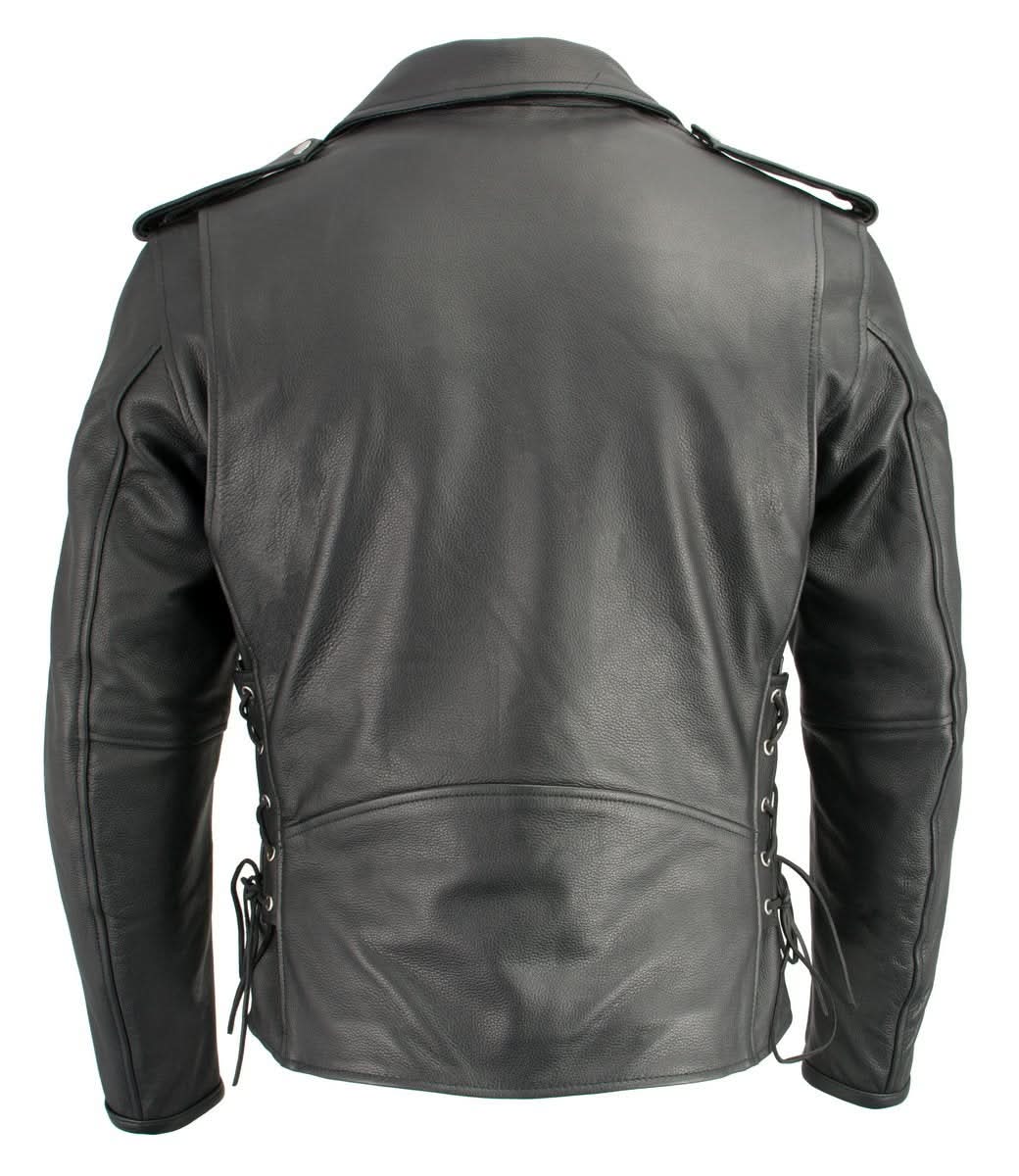 Milwaukee Leather LKM1711 Black Leather Motorcycle Jacket for Men, Thick Police Style Biker Jacket w/ Side Lace
