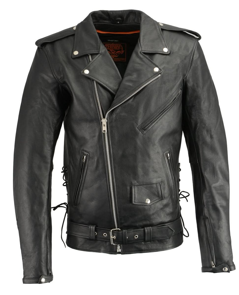 Milwaukee Leather LKM1711TALL Men's Black Tall-Sizes Side Lace Police Style Leather Jacket