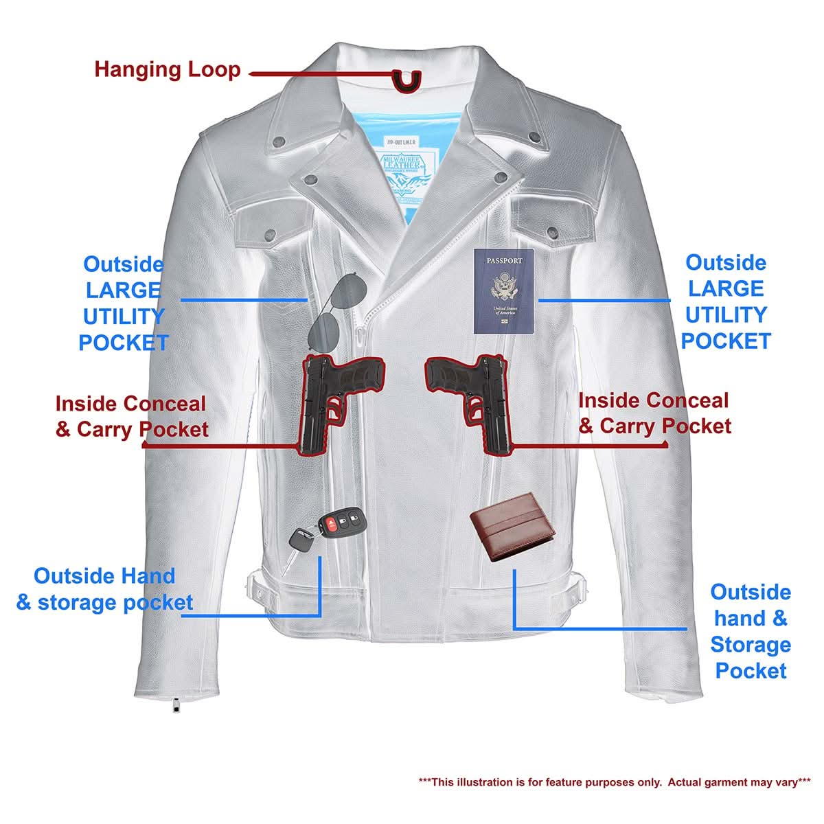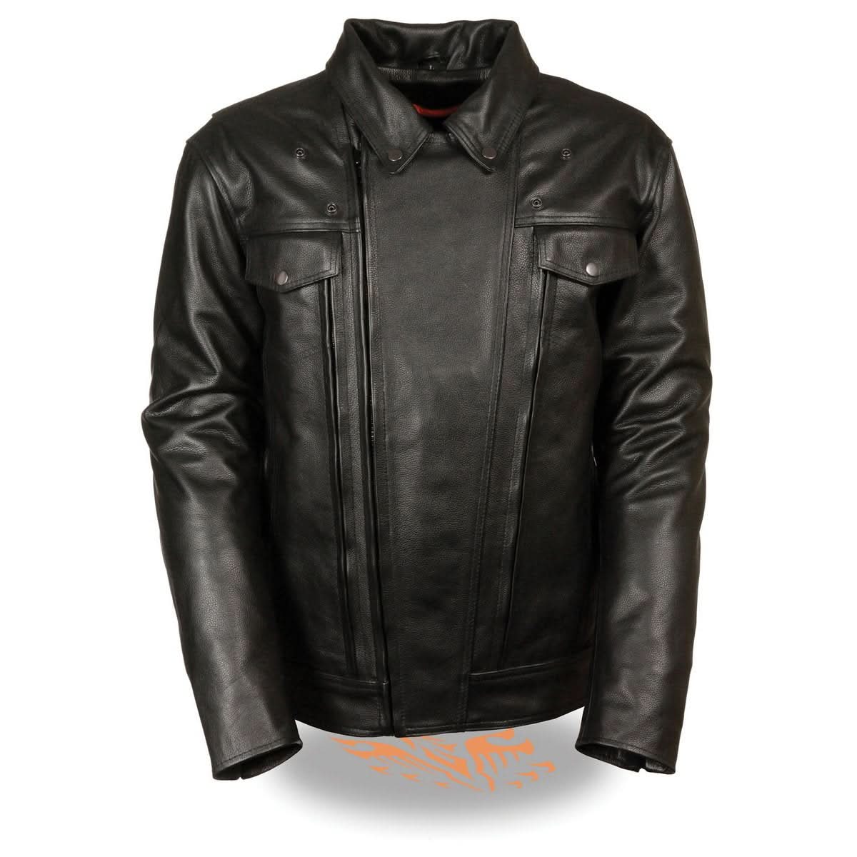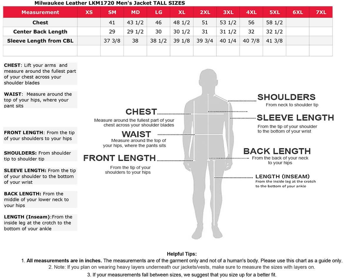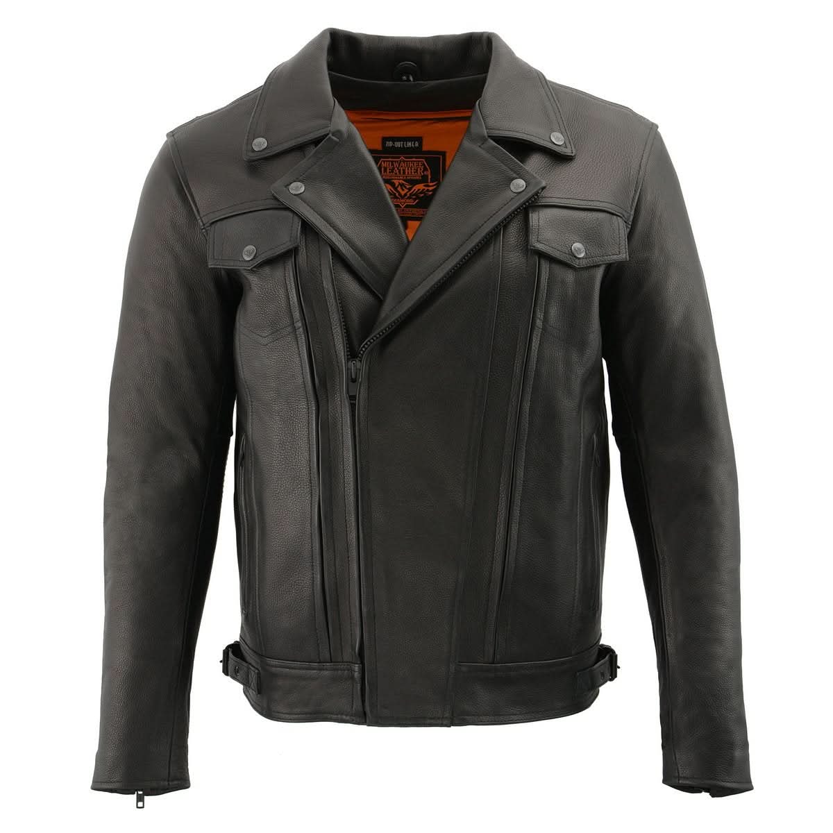 Milwaukee Leather LKM1720T Men's Tall Sizes Black Premium Leather Motorcycle Vented Leather Jacket w/ Utility Pockets