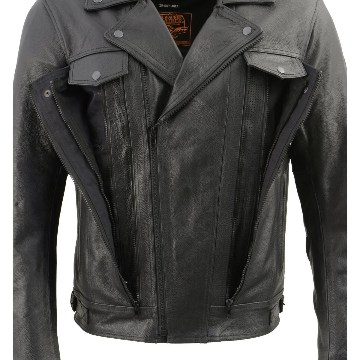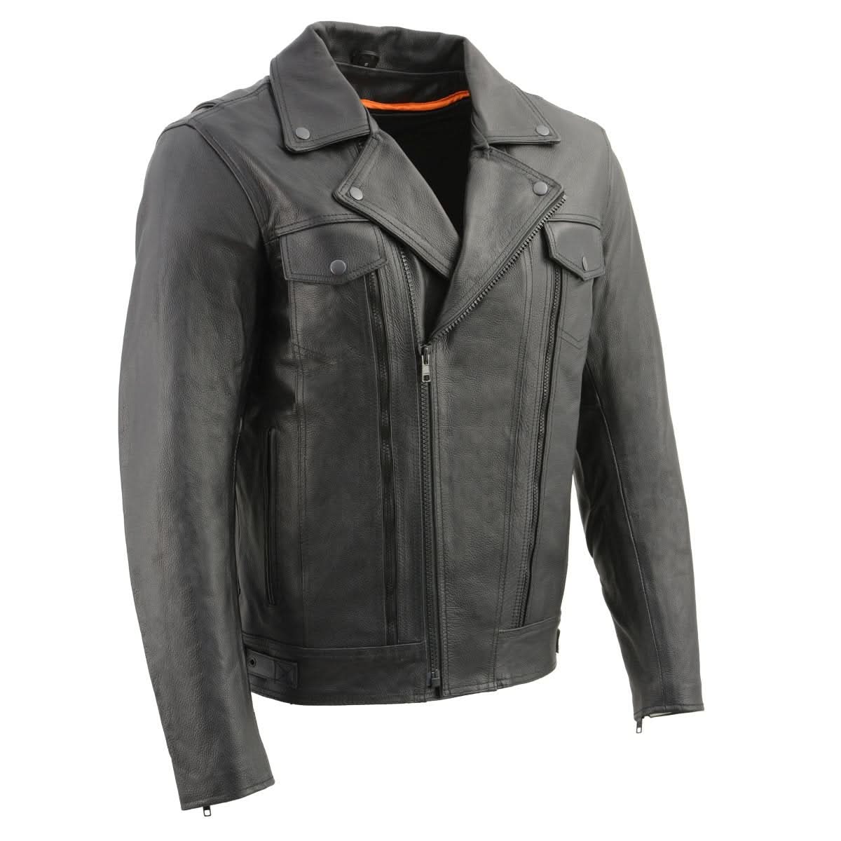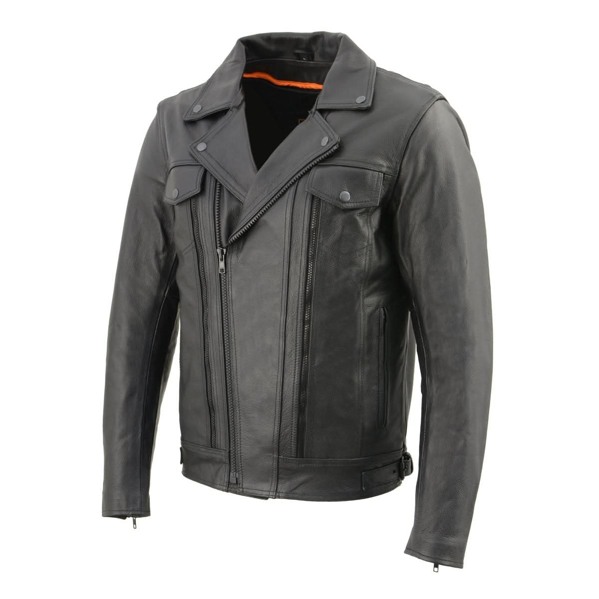 Milwaukee Leather LKM1760 Men's Black Leather Motorcycle Riders Jacket w/ Multi-Utility Pockets
