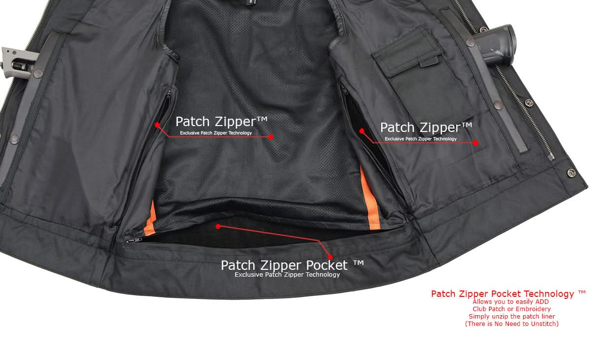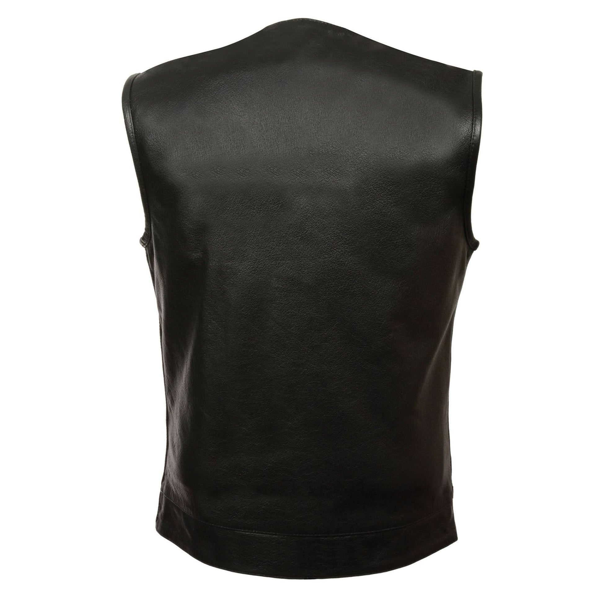 Milwaukee Leather LKM3711 Men's Black Leather Collarless Club Style Motorcycle Rider Vest w/ Dual Front Closure