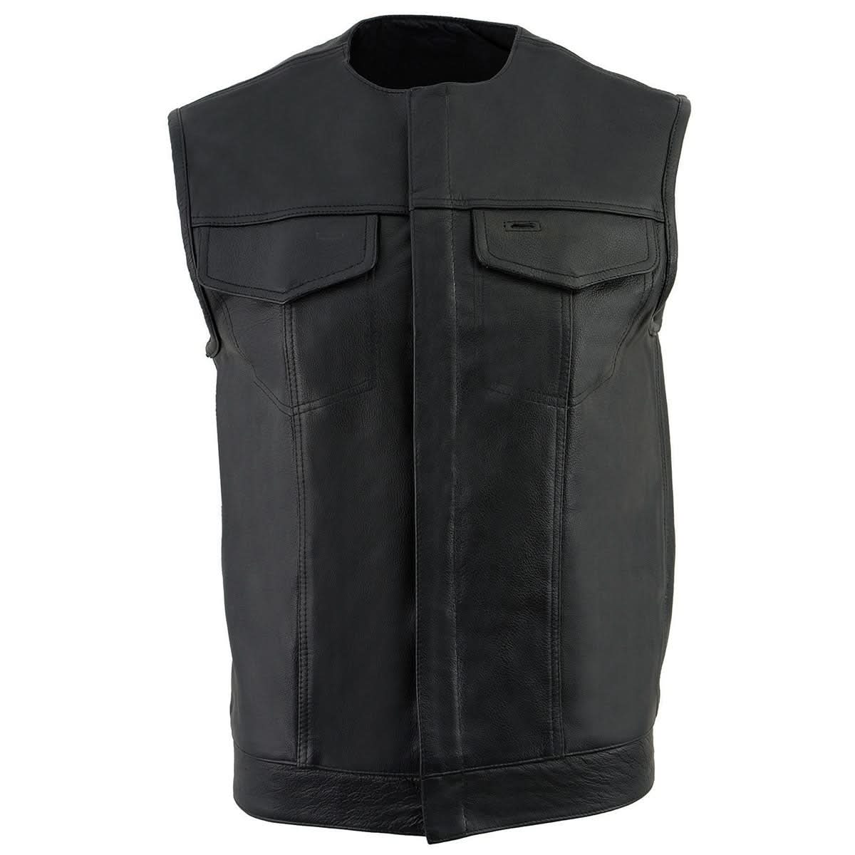 Milwaukee Leather LKM3721 Men's Black Leather Collarless Club Style Motorcycle Rider Vest w/Concealed Snap Closure