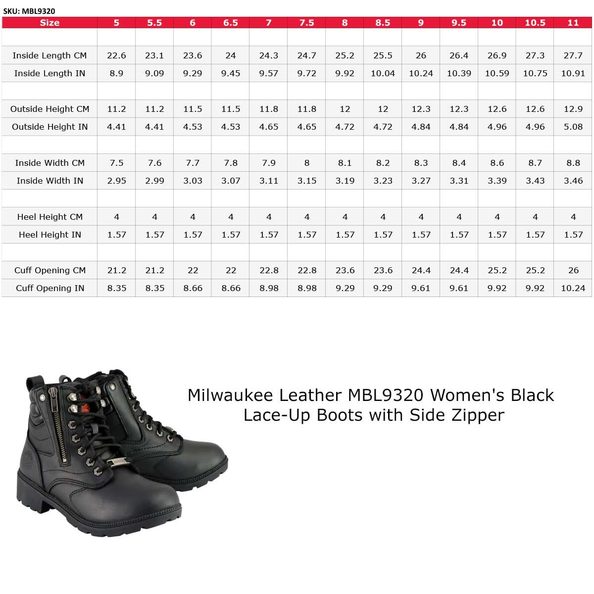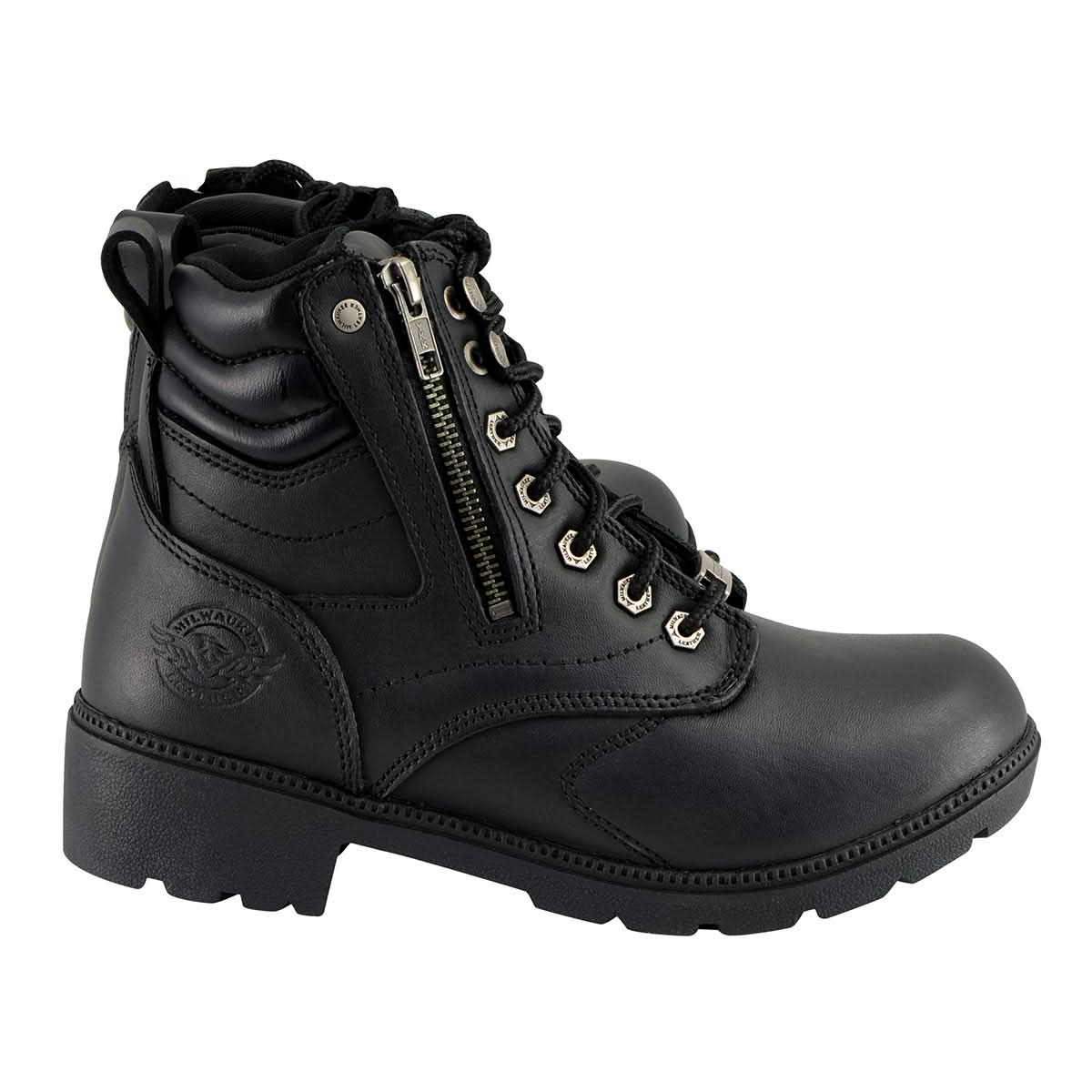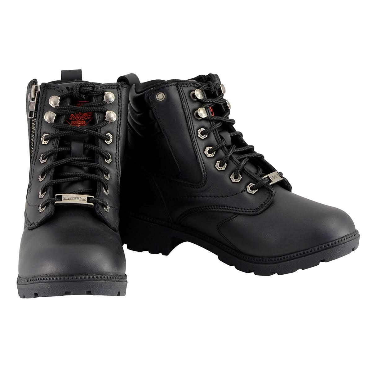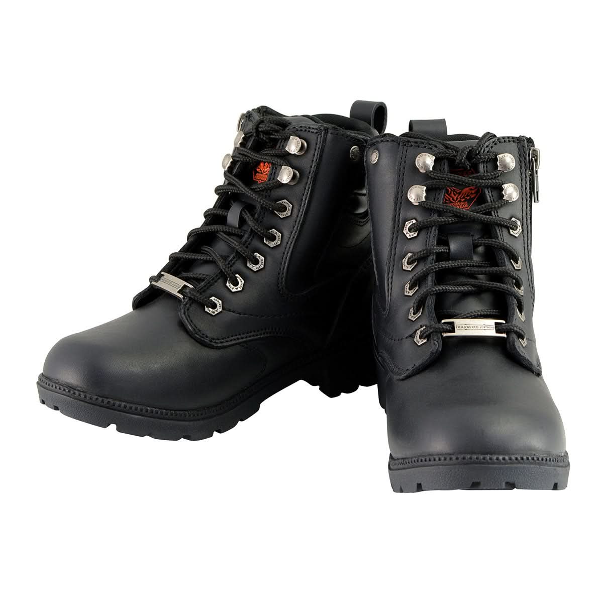 Milwaukee Leather MBL9320 Women's Premium Black Leather Lace-Up Motorycle Riding Boots with Side Zipper