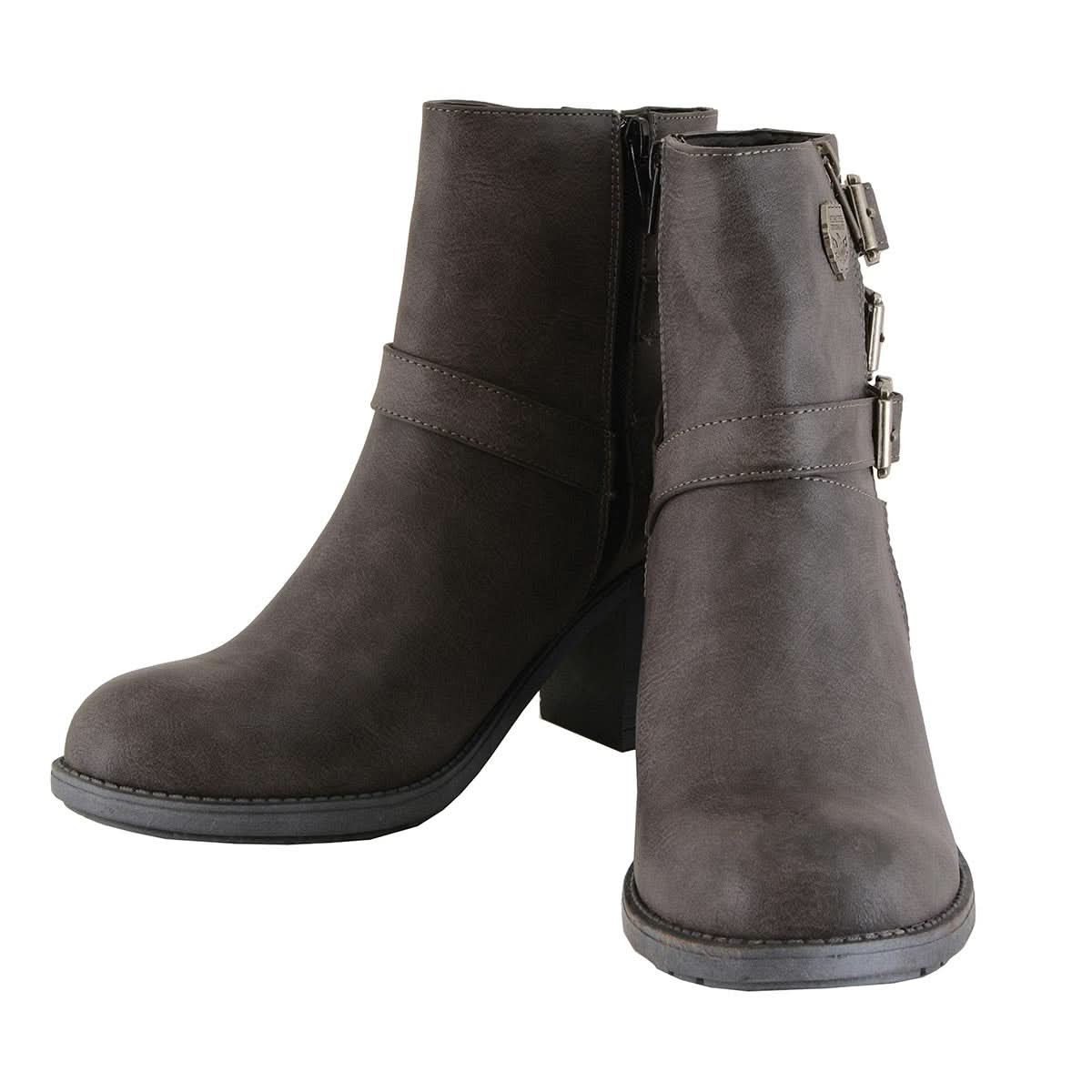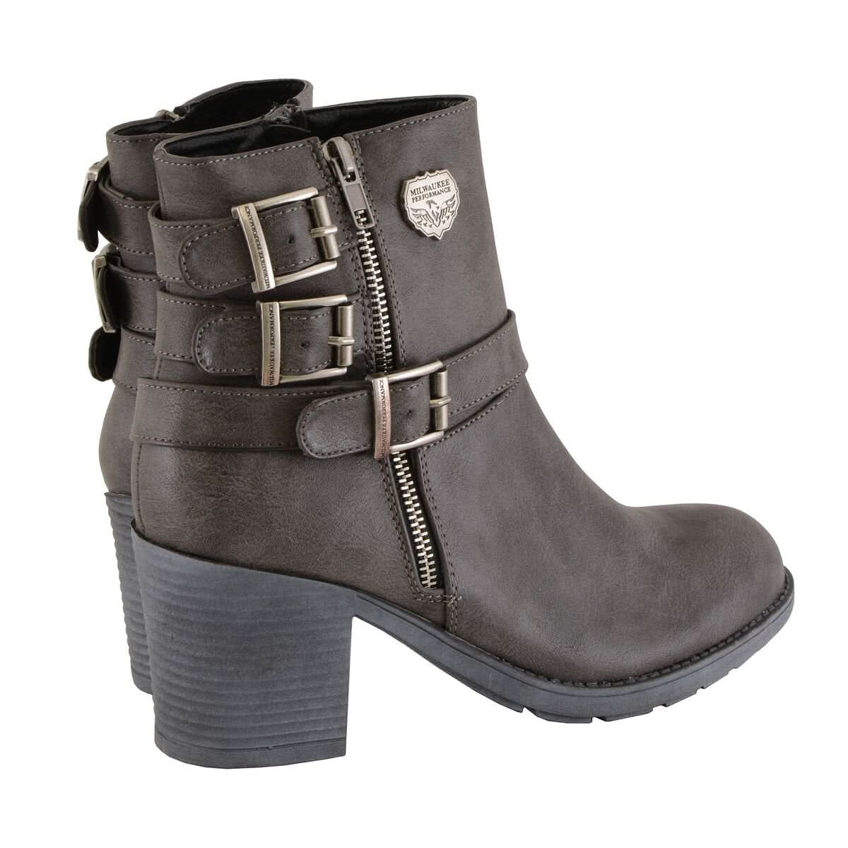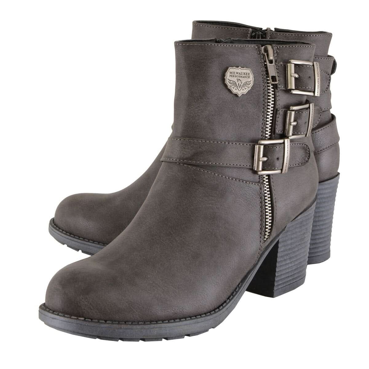 Milwaukee Leather MBL9406 Women's Stone Grey 3-Buckle Leather Boots with Platform Heel