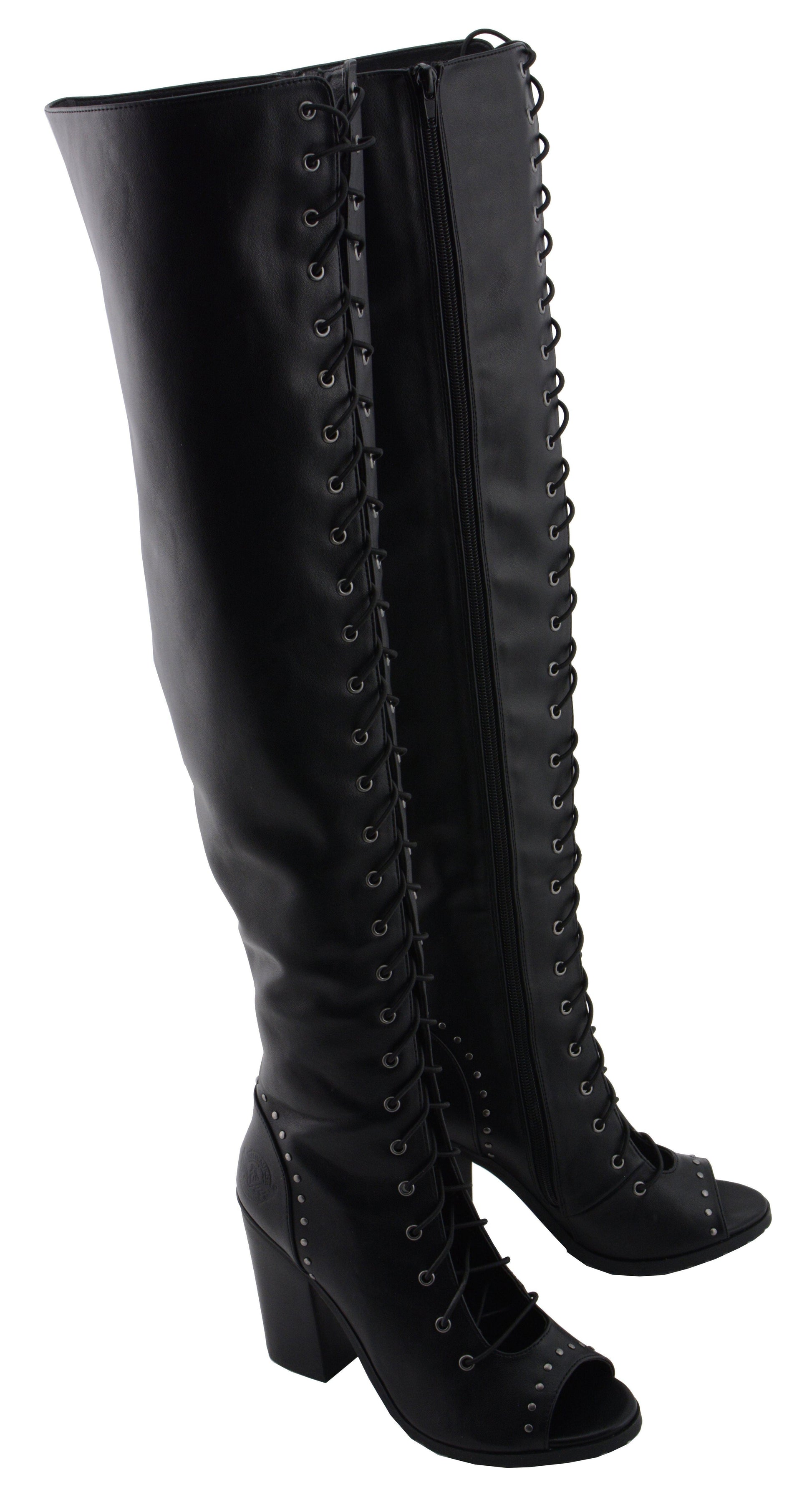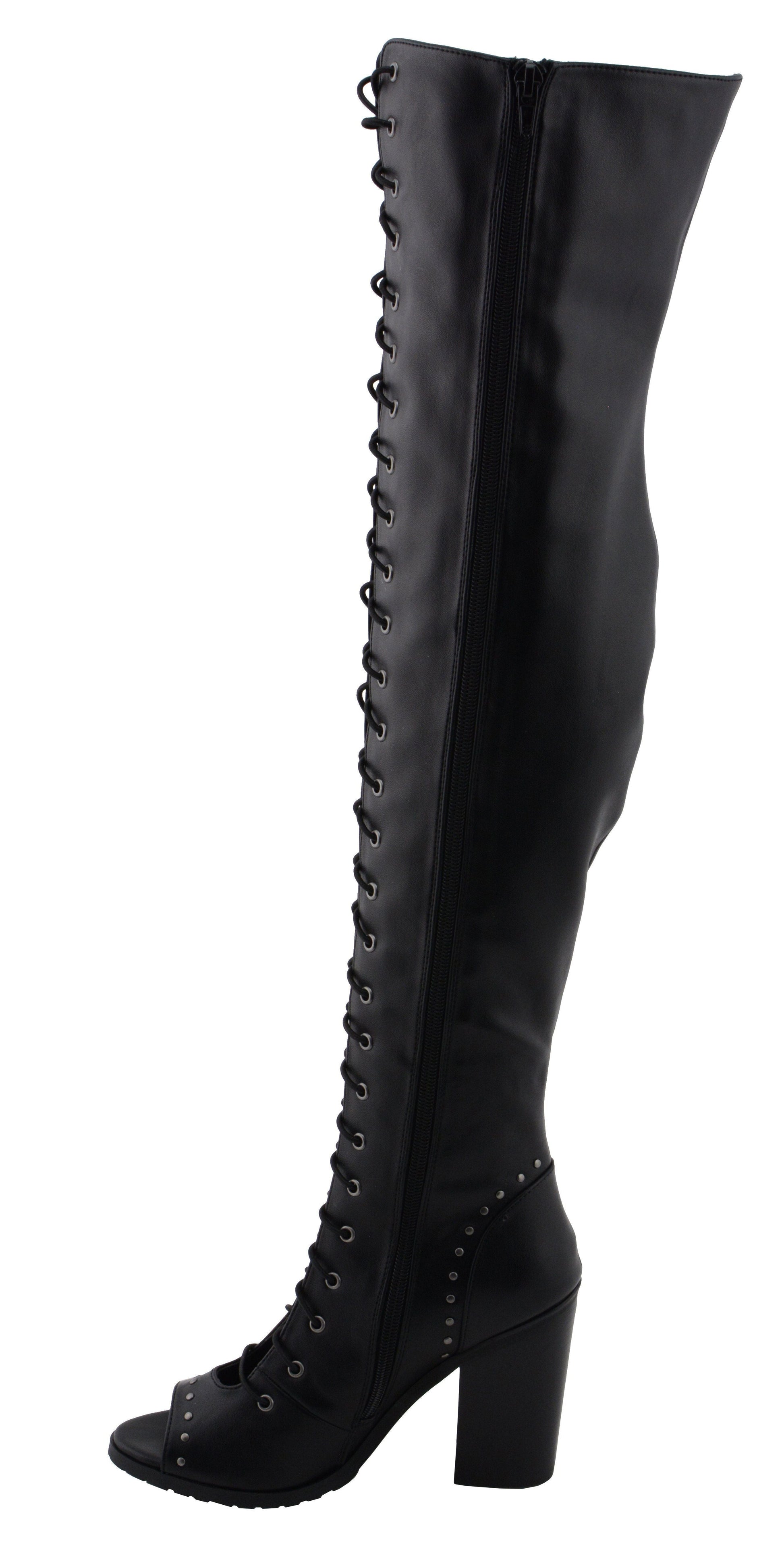 Milwaukee Leather MBL9421 Women's Black Lace-Up Knee-High Fashion Casual Boots with Open Toe