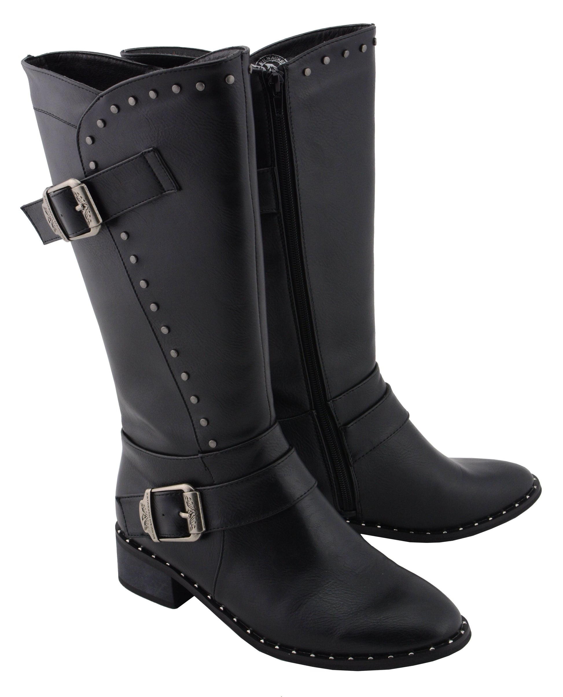 Milwaukee Leather MBL9423 Women’s Black Studded Boots with Studded Outsole