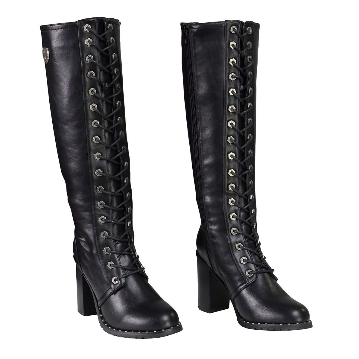 Milwaukee Leather MBL9442 Women's Black Lace-Up Tall Biker Fashion Boots with Platform Heel & Studs