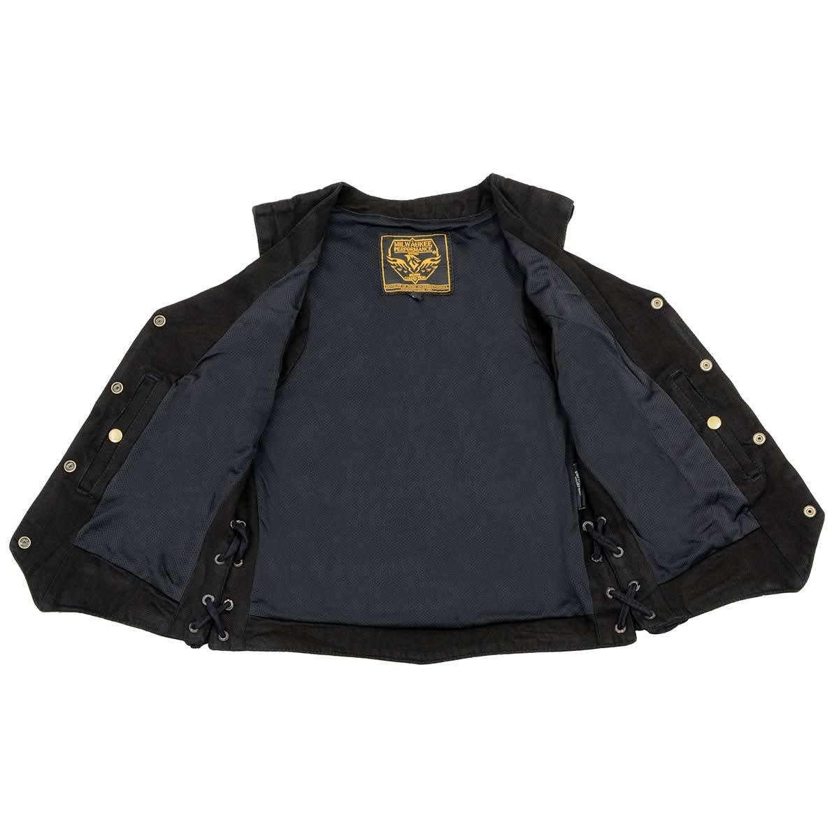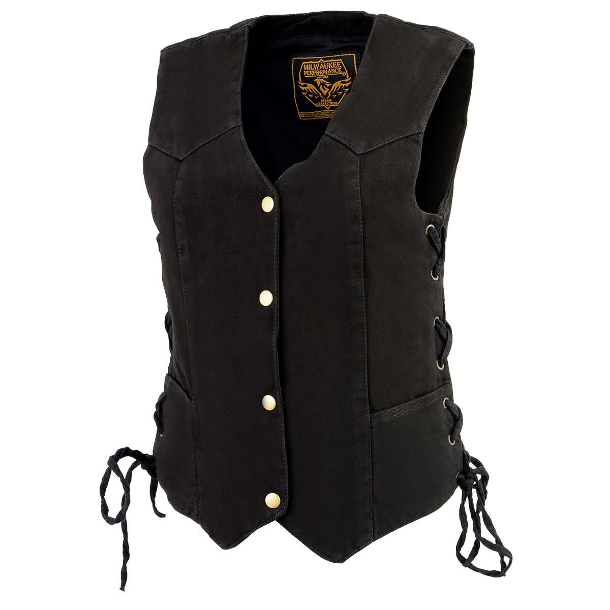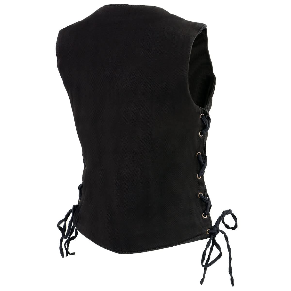 Milwaukee Leather MDL4001 Women's Black Denim Motorcycle Vest with Side Lace and 4 Snap Front