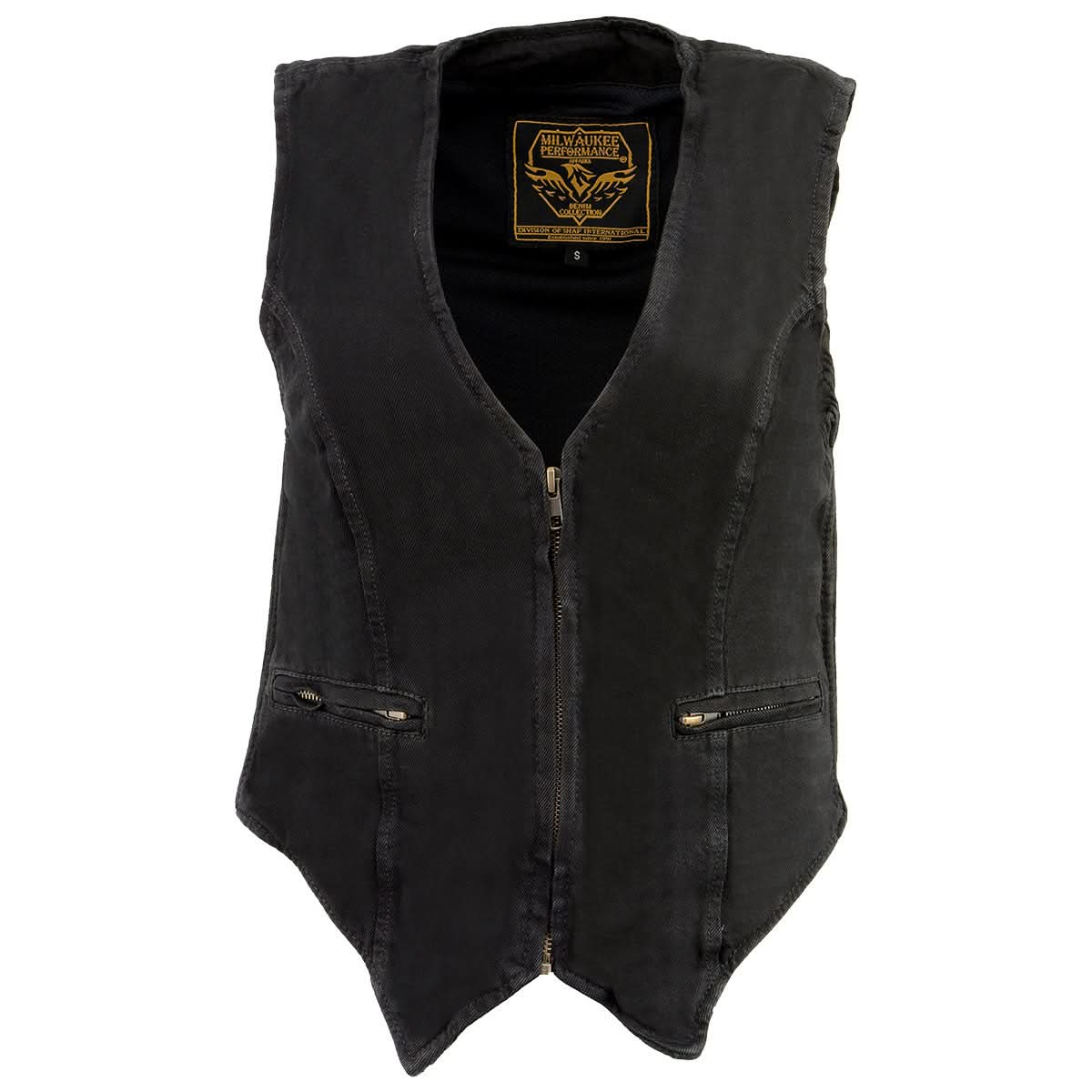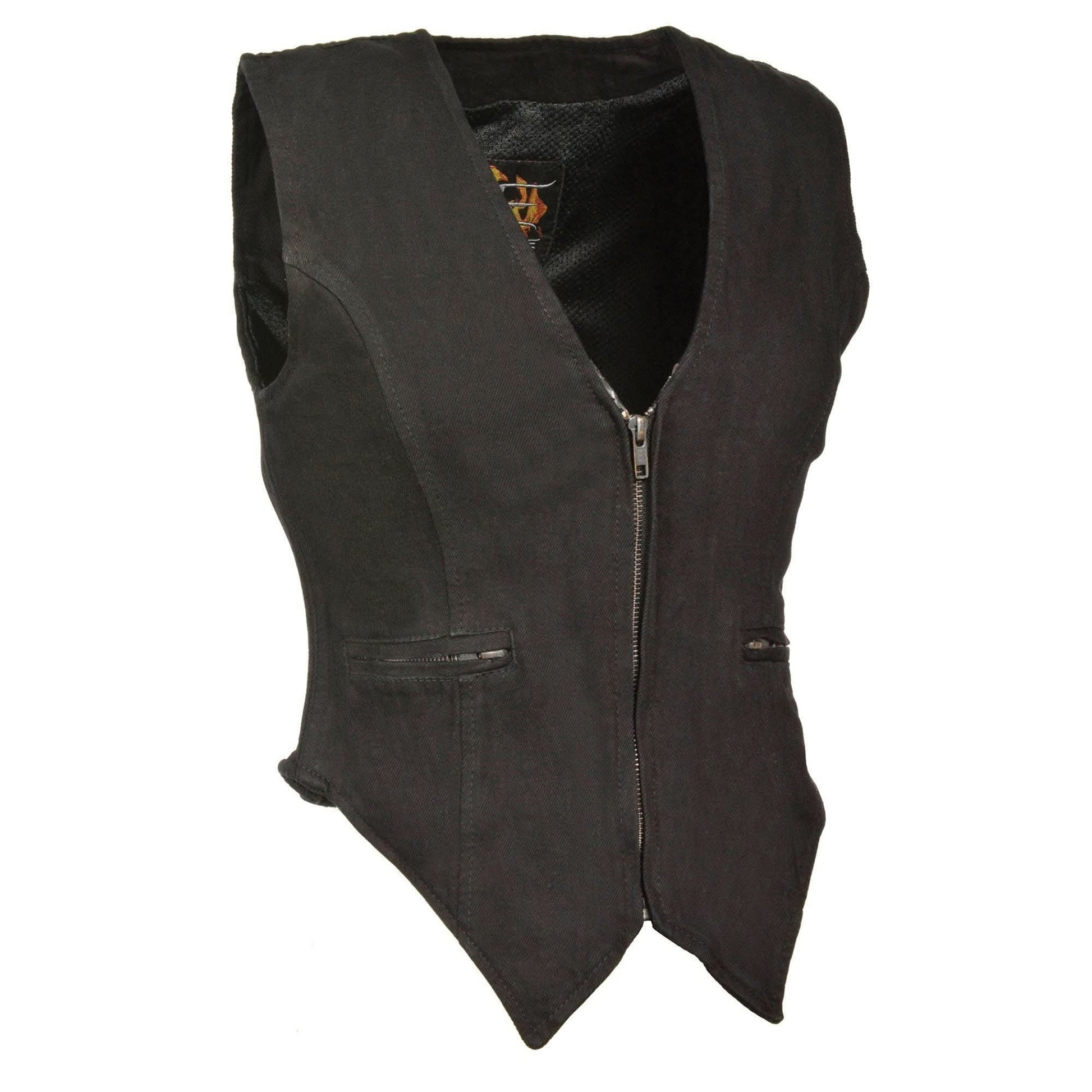 Milwaukee Leather MDL4010 Women's Black Zipper Front Denim Vest with Side Stretch
