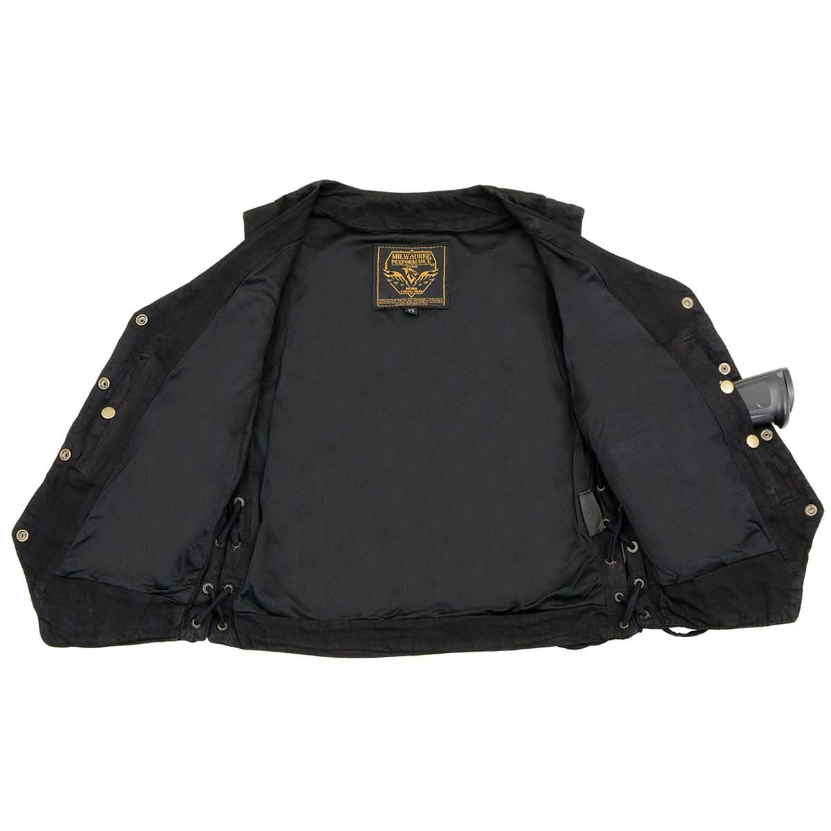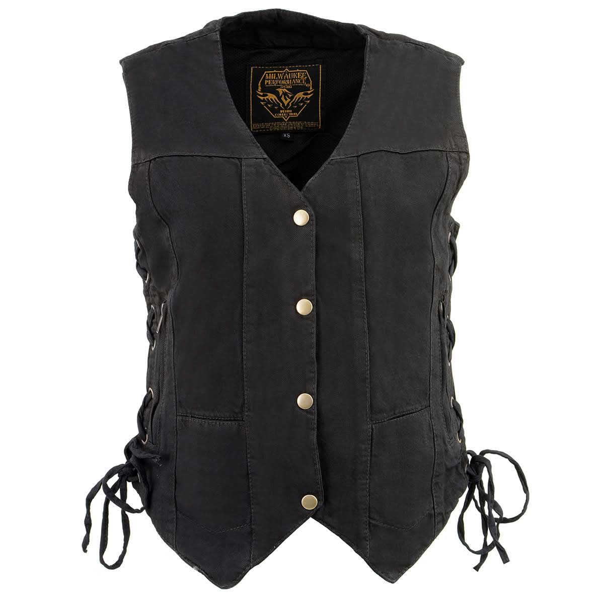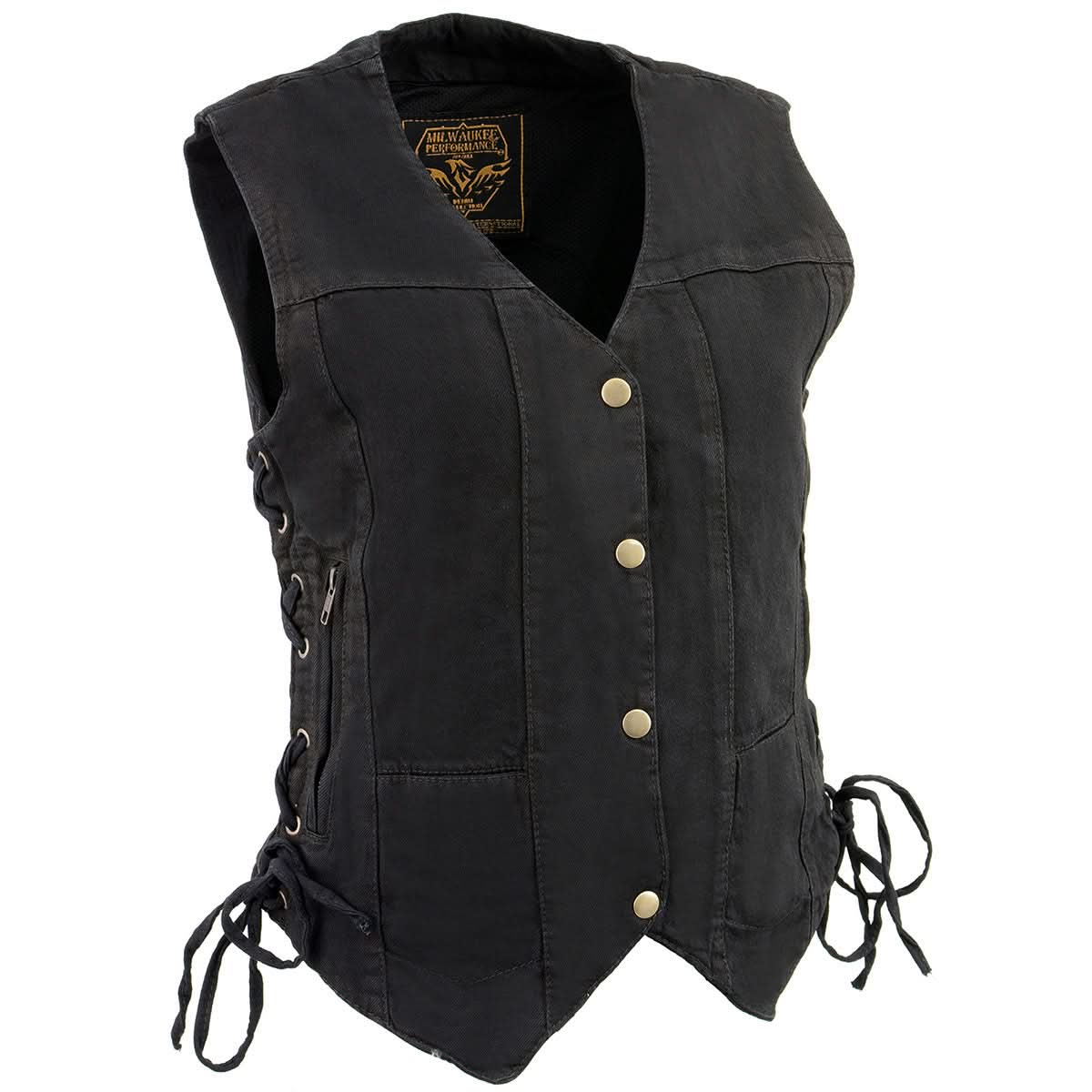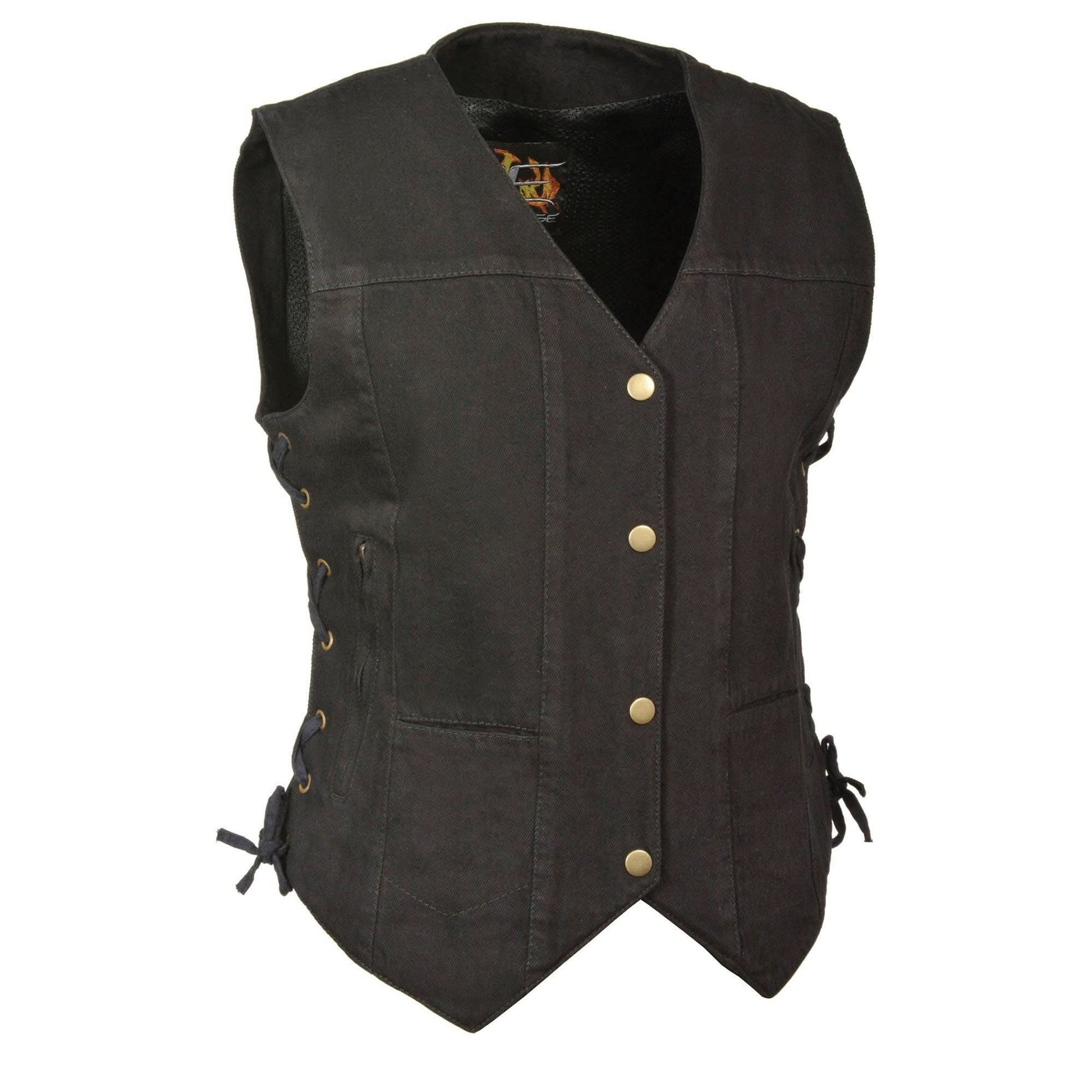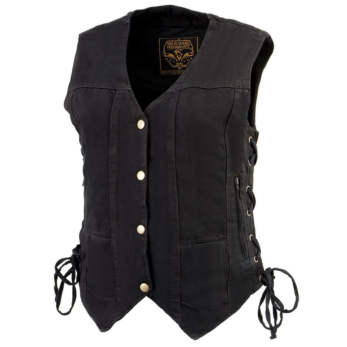 Milwaukee Leather MDL4020 Women's Classic Black ‘6 Pocket’ Side Lace Denim Vest