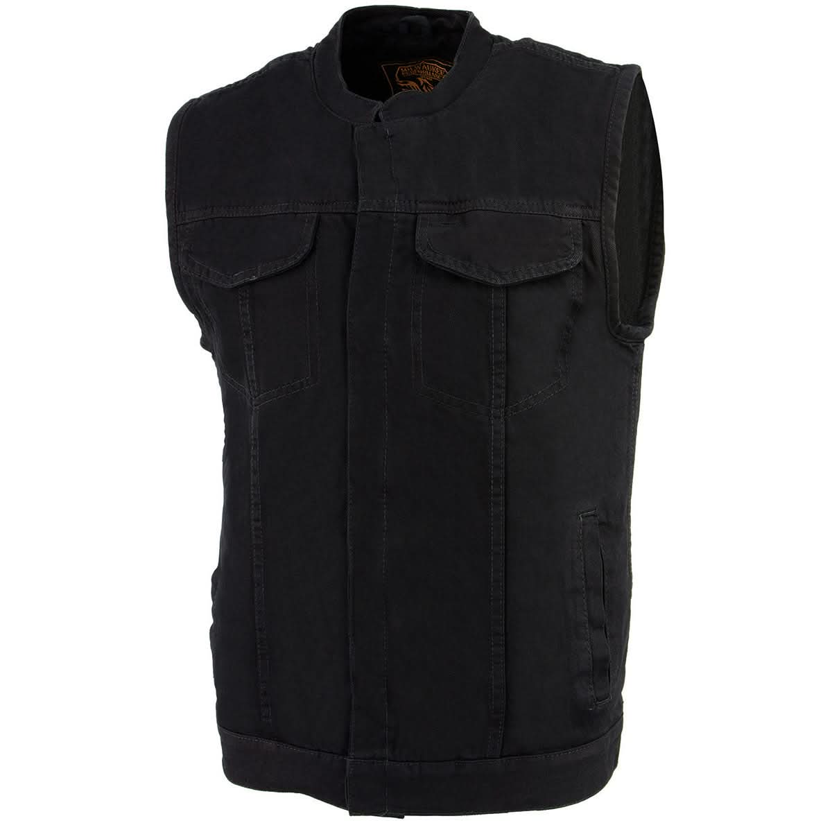 Milwaukee Leather MDM3000 Men's 'Brute' Concealed Snap Black Denim Club Style Vest w/ Hidden Zipper